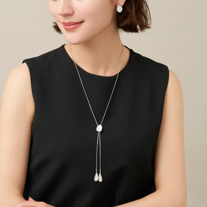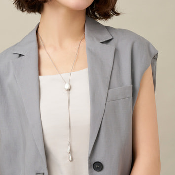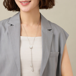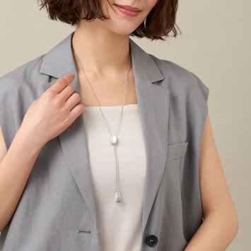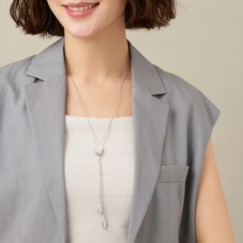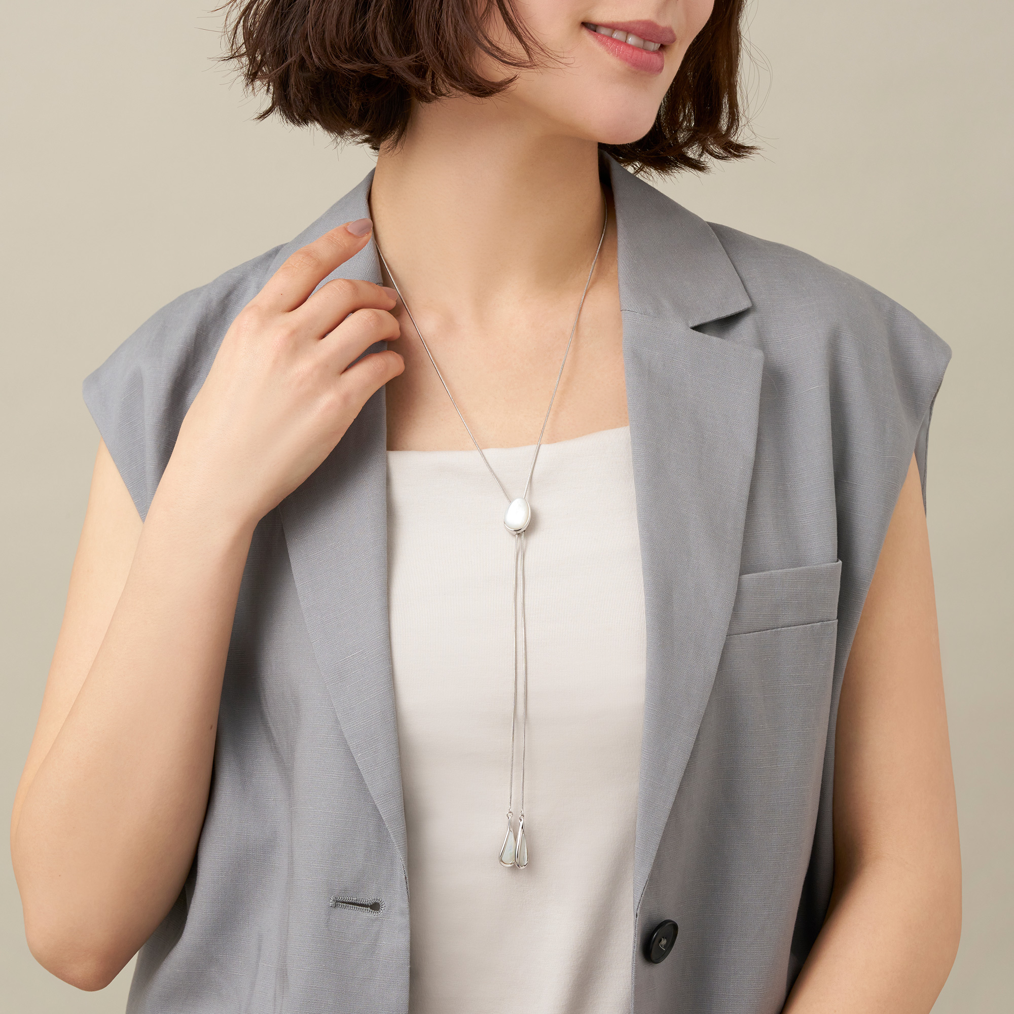 芽吹きはじめた植物の種や葉を彩る雨の雫から着想を得た、オーガニックなフォルムが印象的なネックレス。