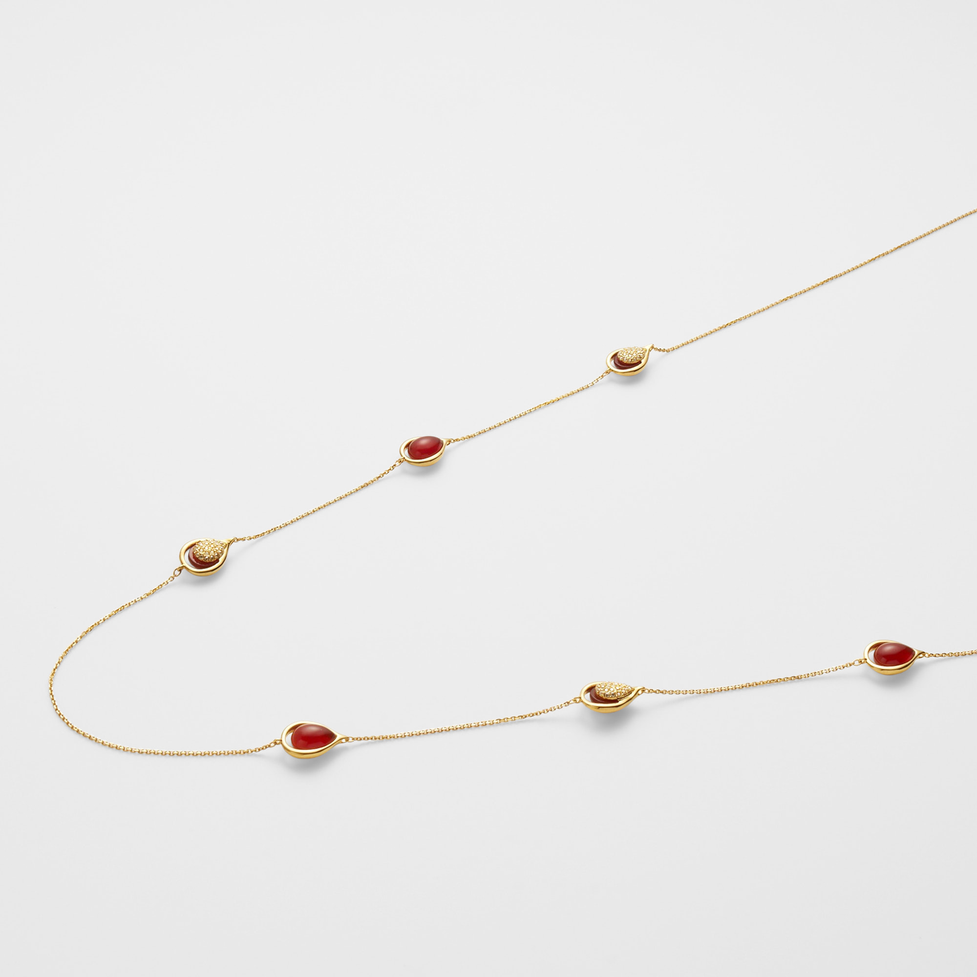 ぷっくりとした艶やかなカーネリアンを贅沢に散りばめたネックレス。