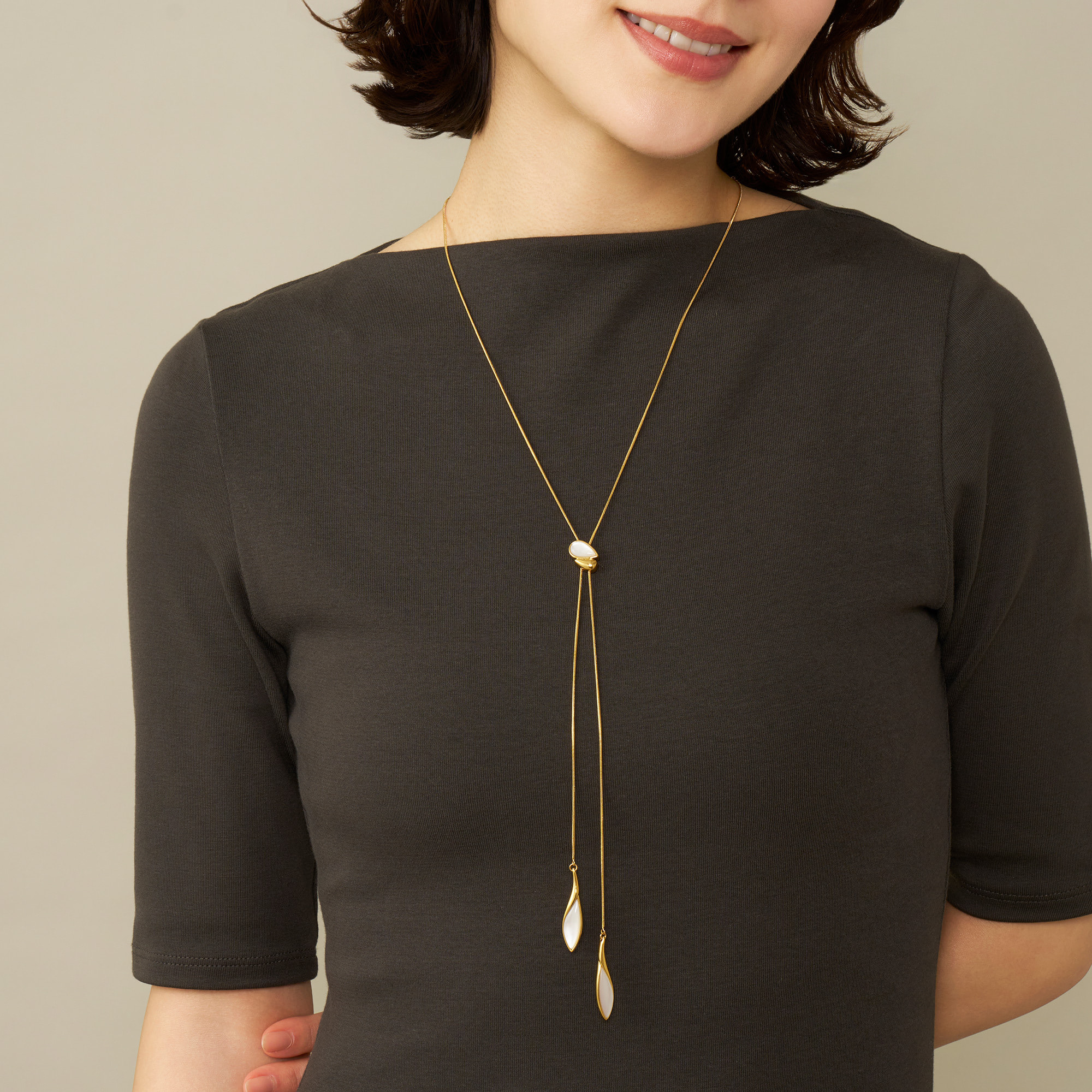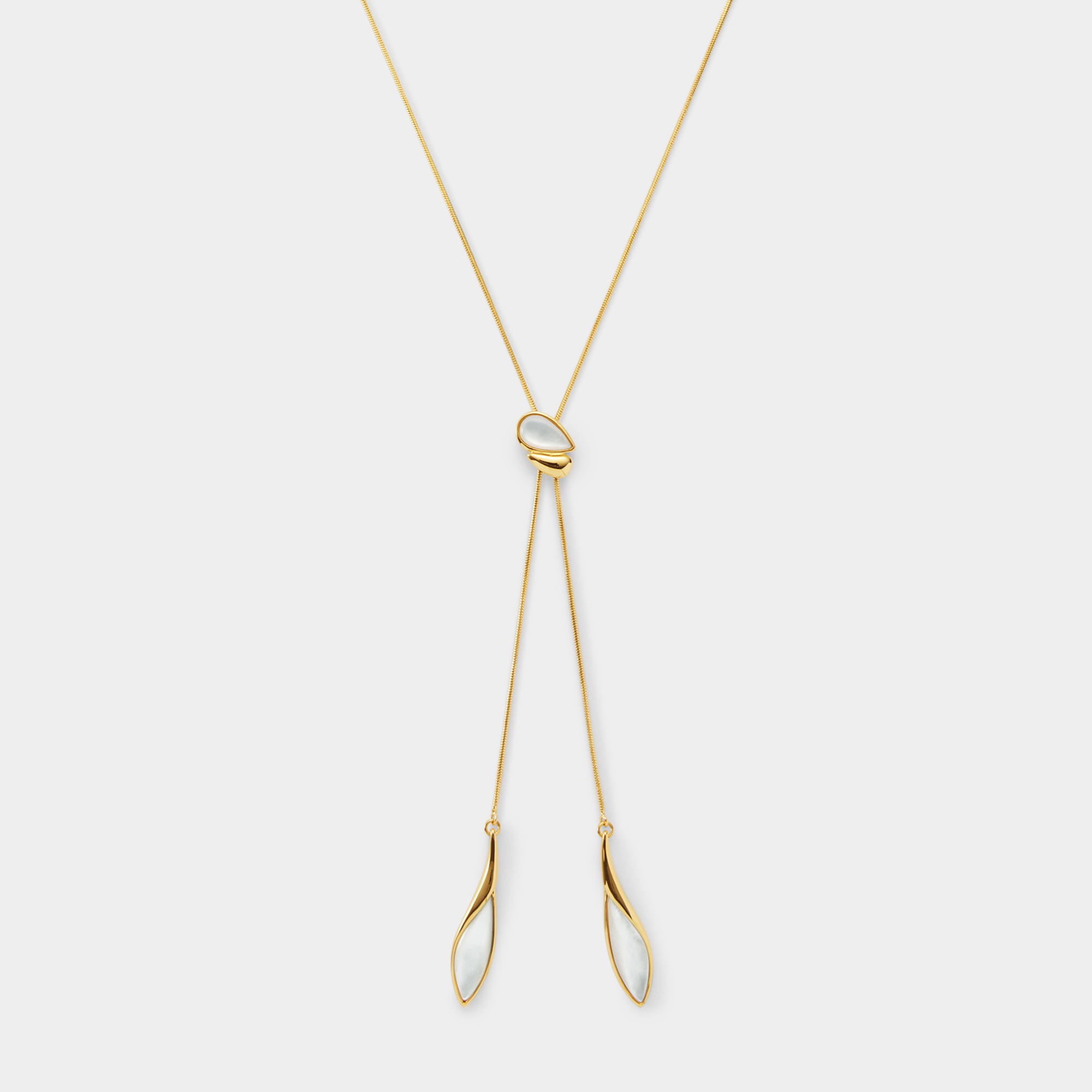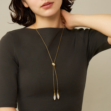 自然が生み出す造形美から着想を得て、リーフのフォルムをモダンに昇華したラリエットネックレス。