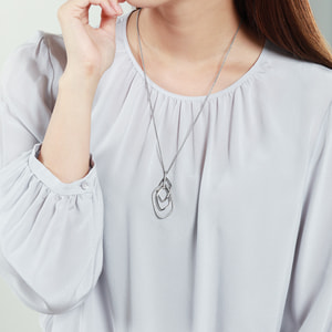 つくりの良さと着けやすいサイズ感が人気のベーシックシリーズ。カットガラスが繊細に輝くエレガントなロングネックレス。幾何学模様に重なったロンバス型のメタルがモダンに胸元を演出します。さまざまな着こなしでスタイリングを華やかにしてくれるネックレスです。