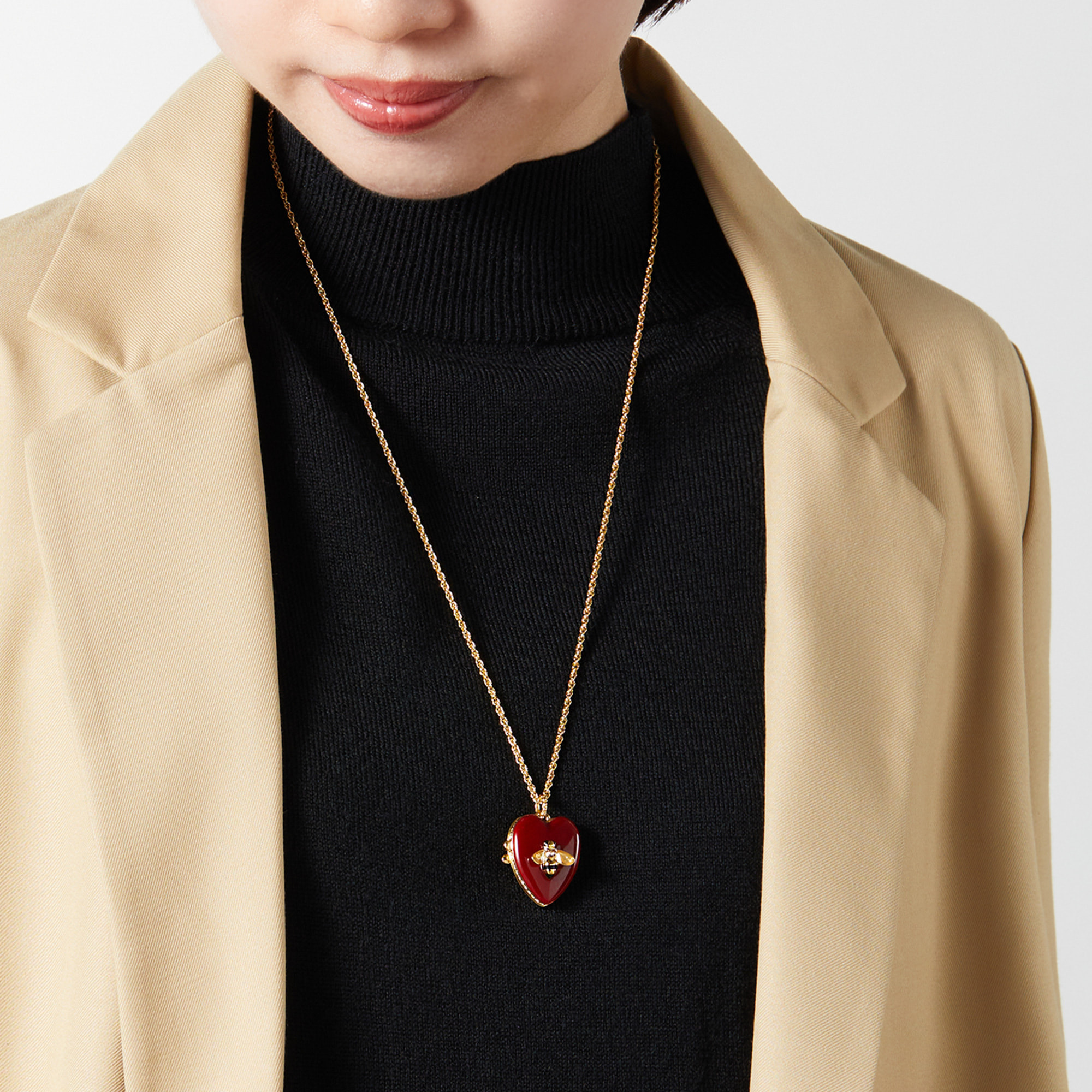 ハートに立体的なミツバチをのせたロケットネックレス。