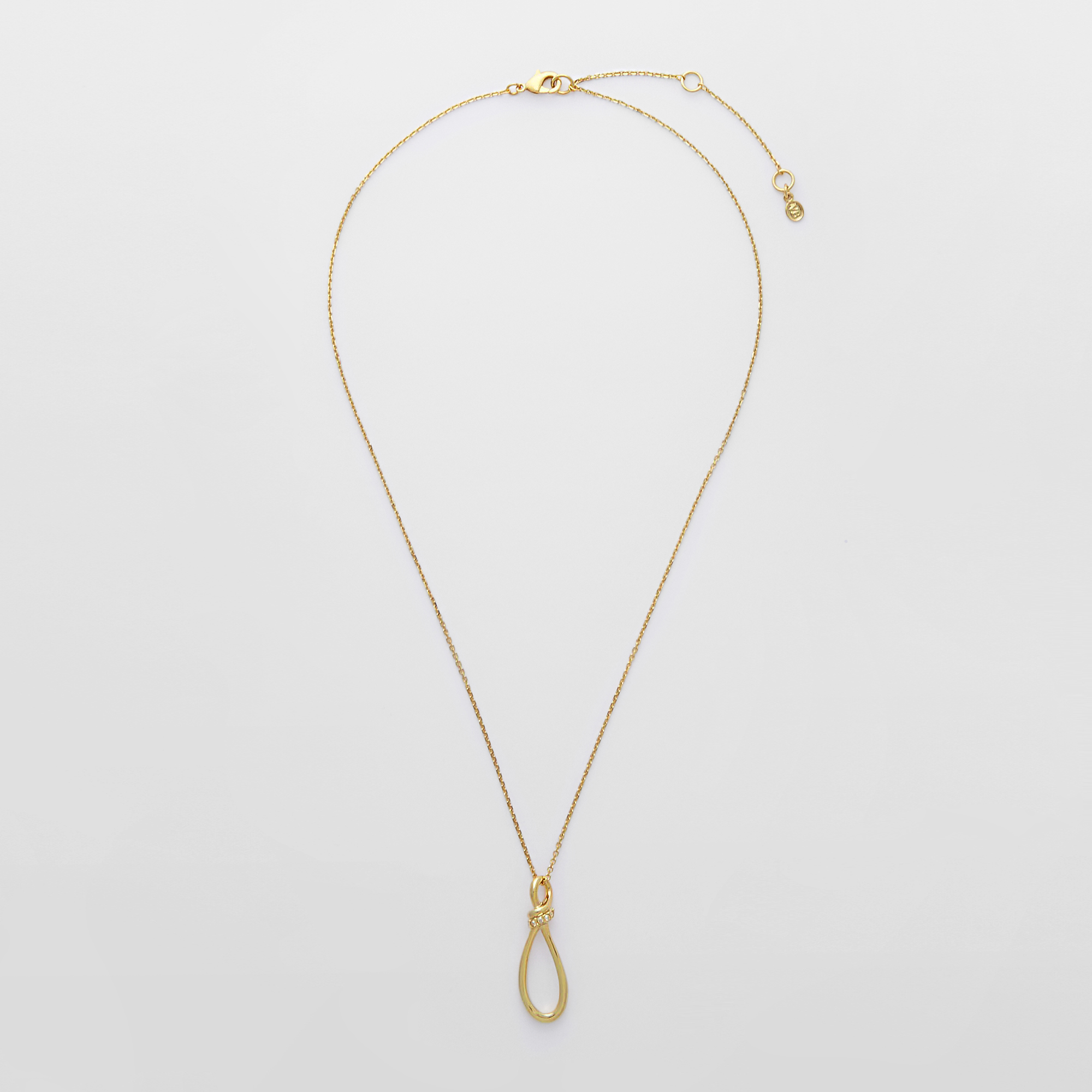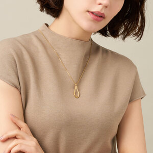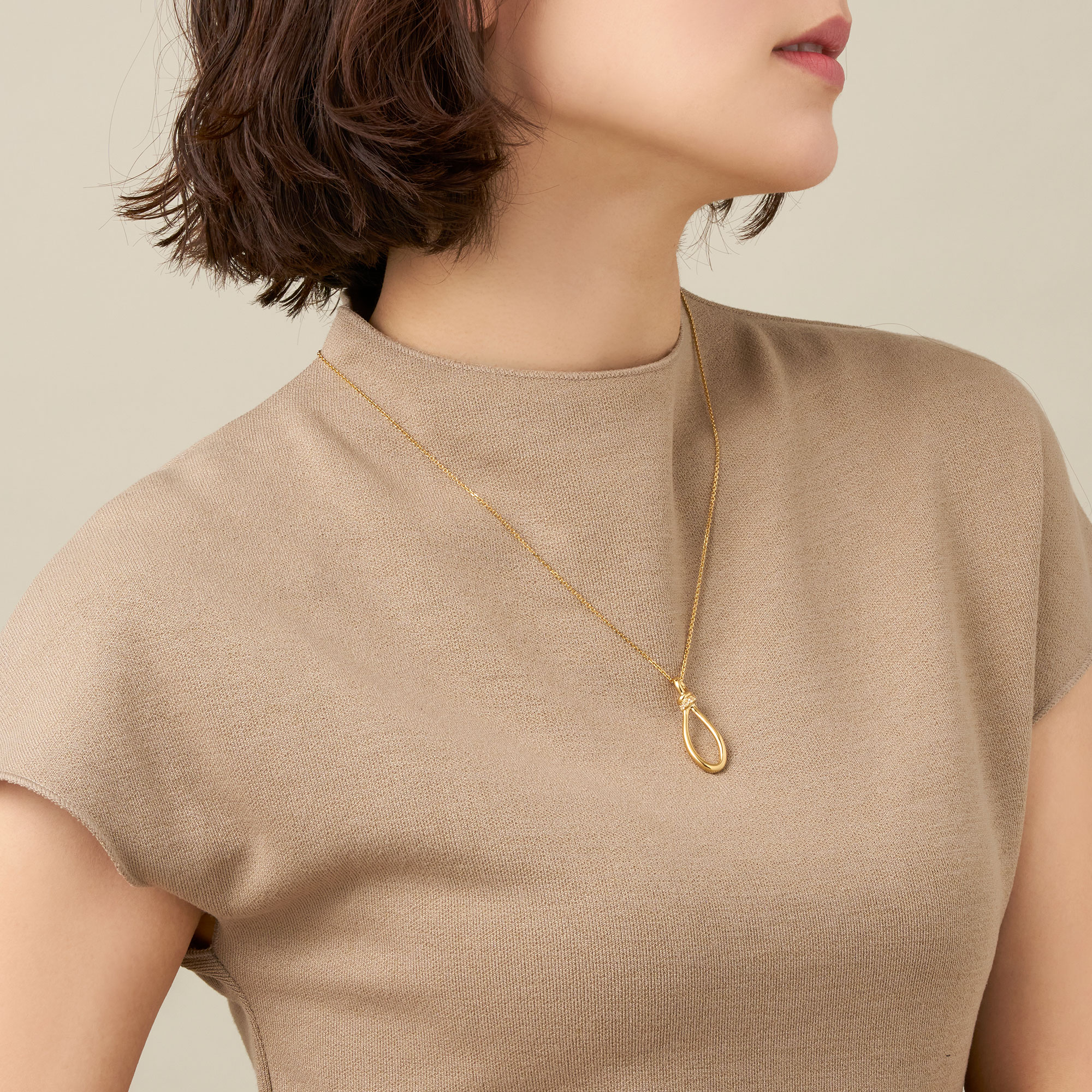 オーガニックなフォルムが美しいネックレス。メタルの線をきゅっと結んだような、柔らかなシルエットが魅力です。カットガラスの輝きが華やかさをプラス。程よいボリューム感で、さまざまなスタイリングのアクセントに活躍するアイテムです。