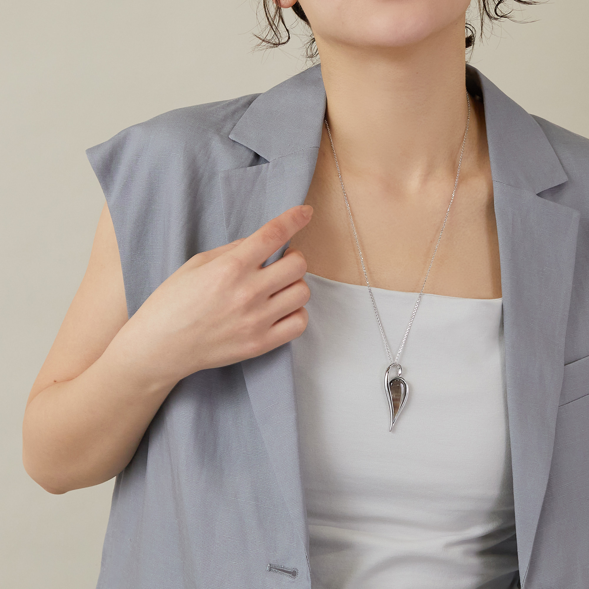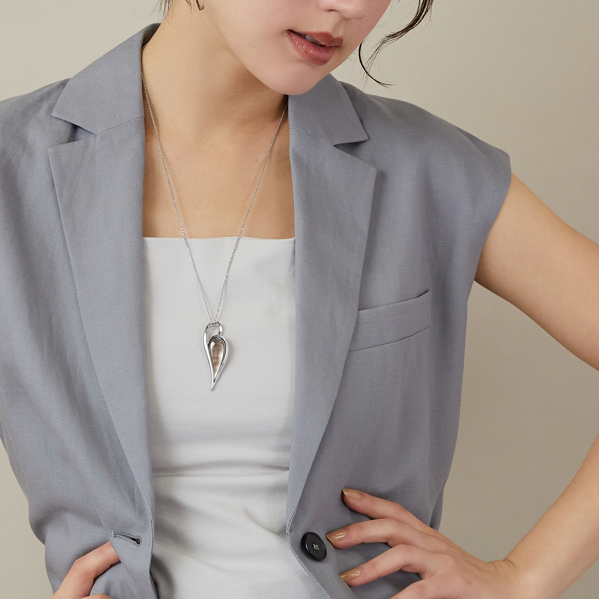 縦長のトップは、柔らかさの中にシャープさも併せ持ち、身につけた時にすっきりとした印象を与えます。