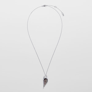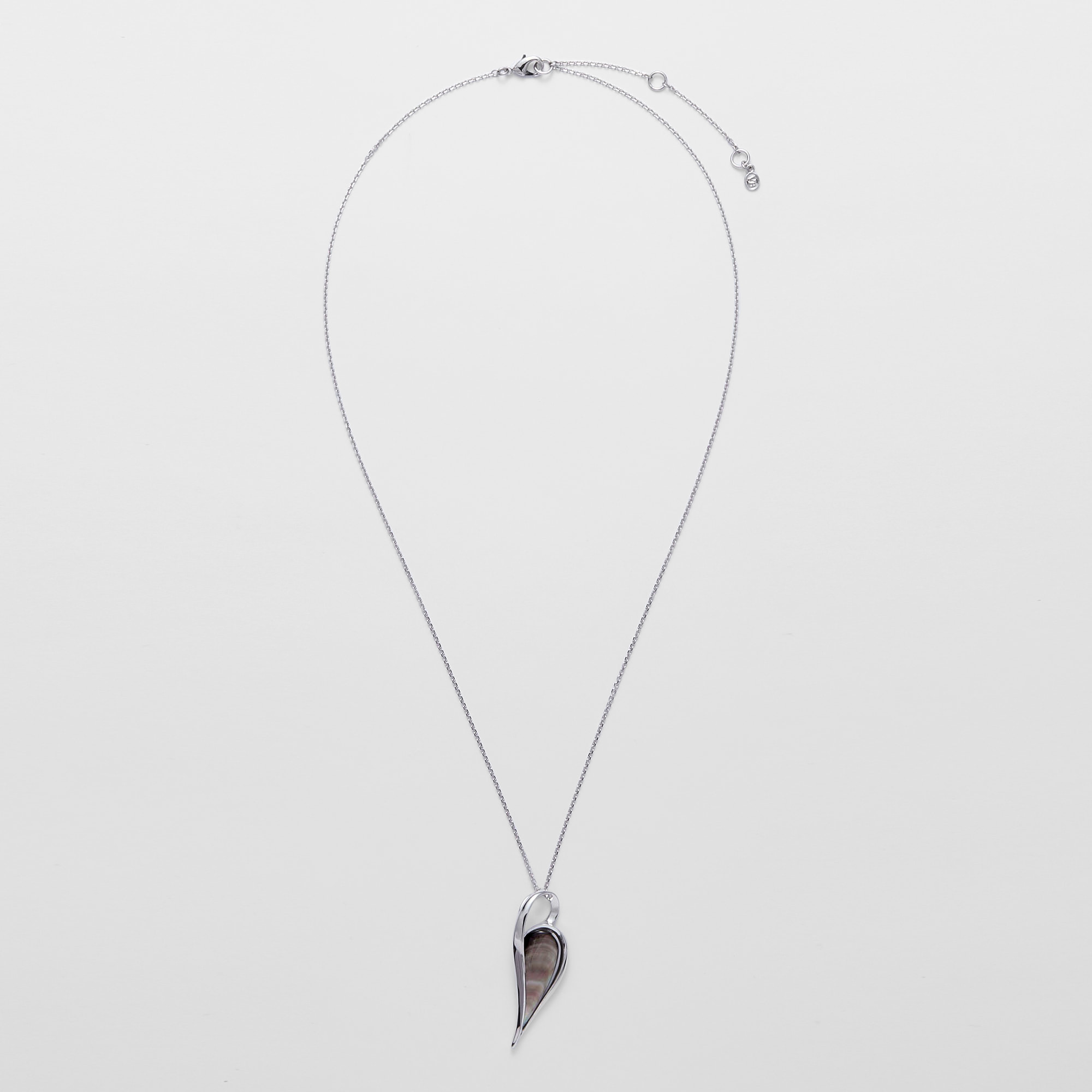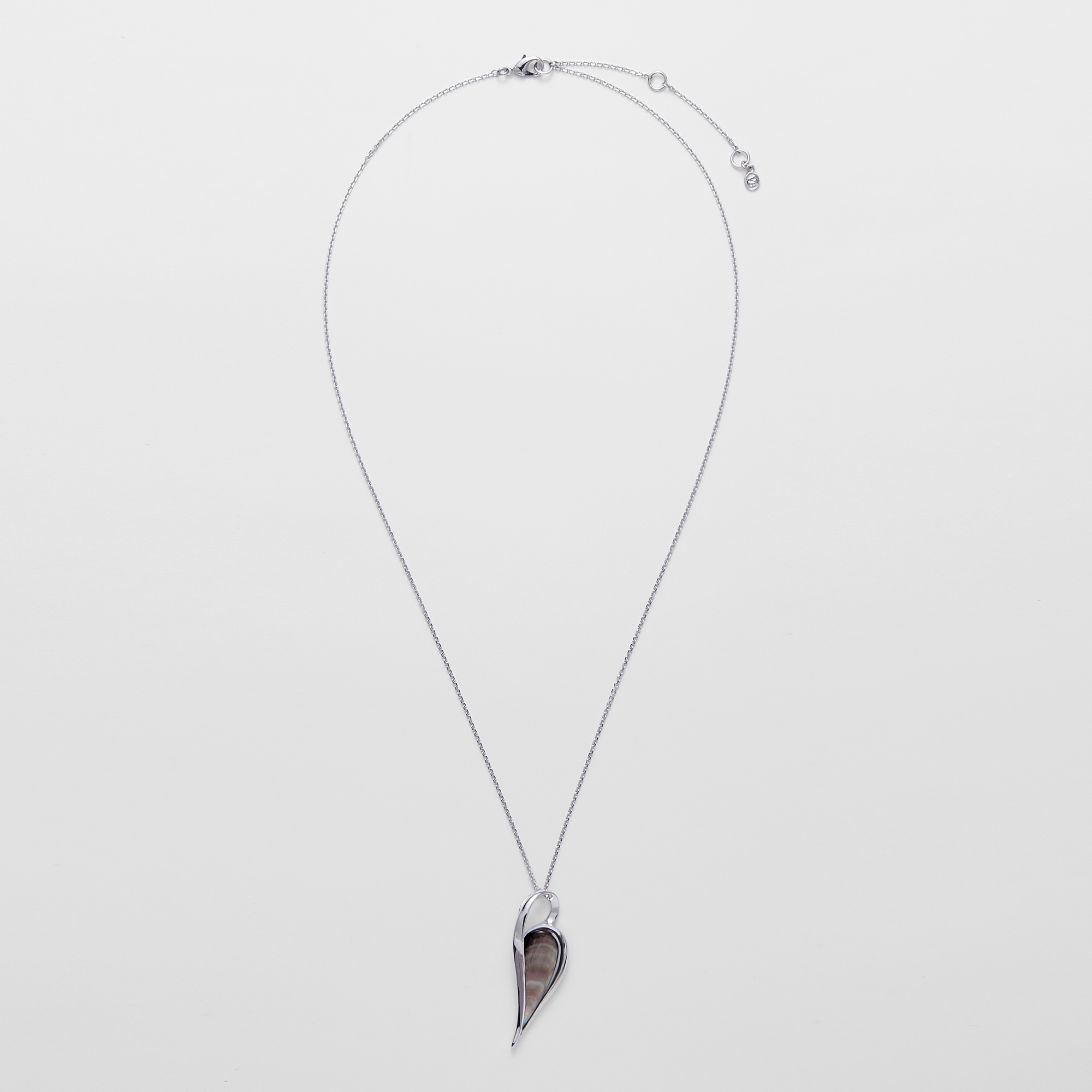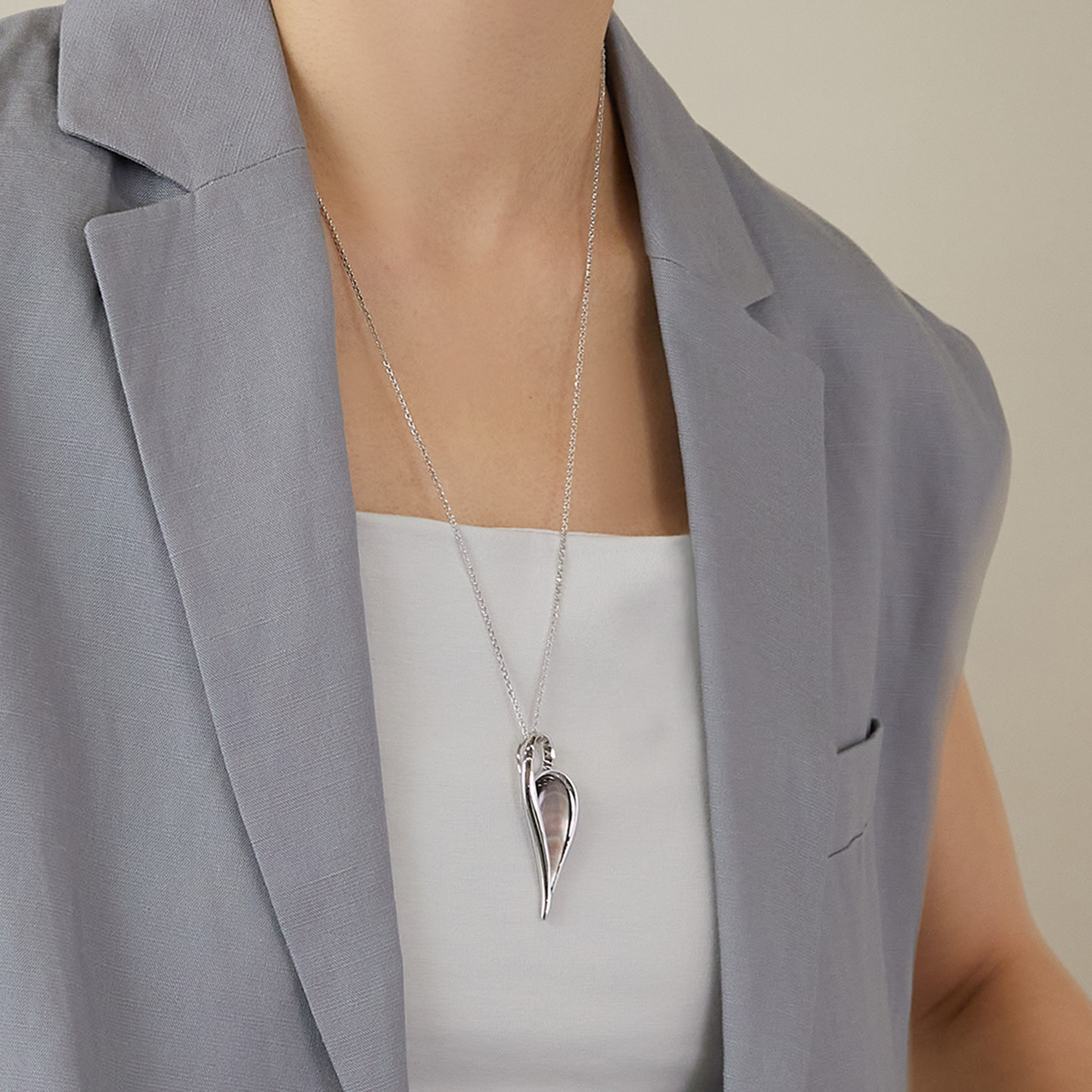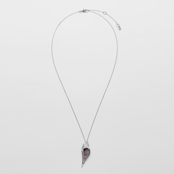 美しい曲線のハート型のメタルフレームの中にティアドロップの黒蝶貝をセッティングしたネックレス。
