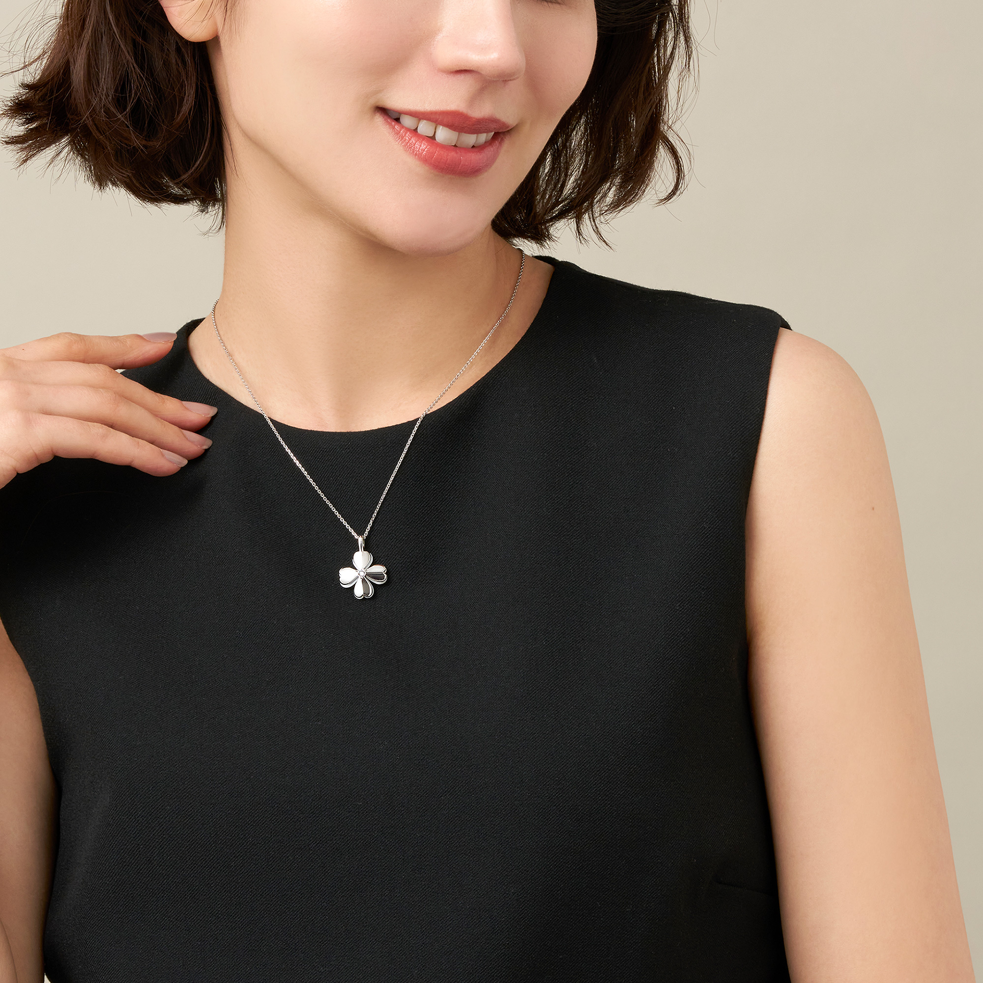 幸運の印といわれる四つ葉のクローバーのネックレス。