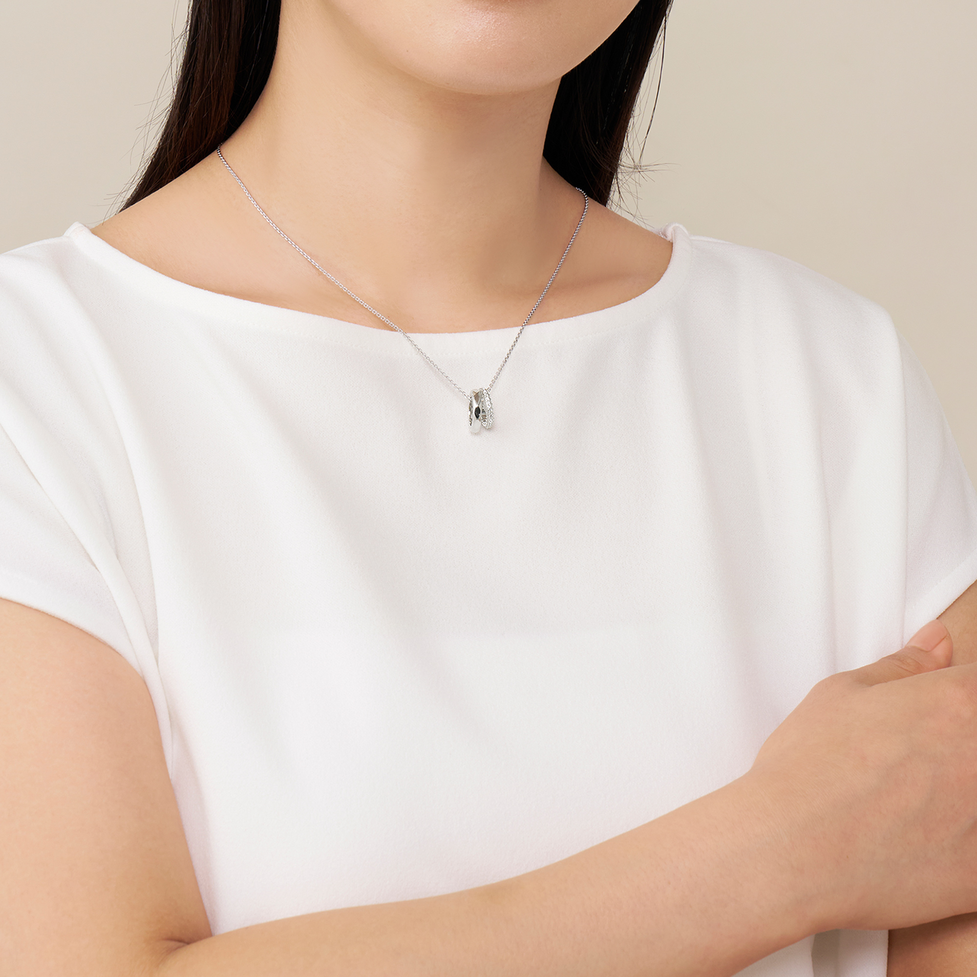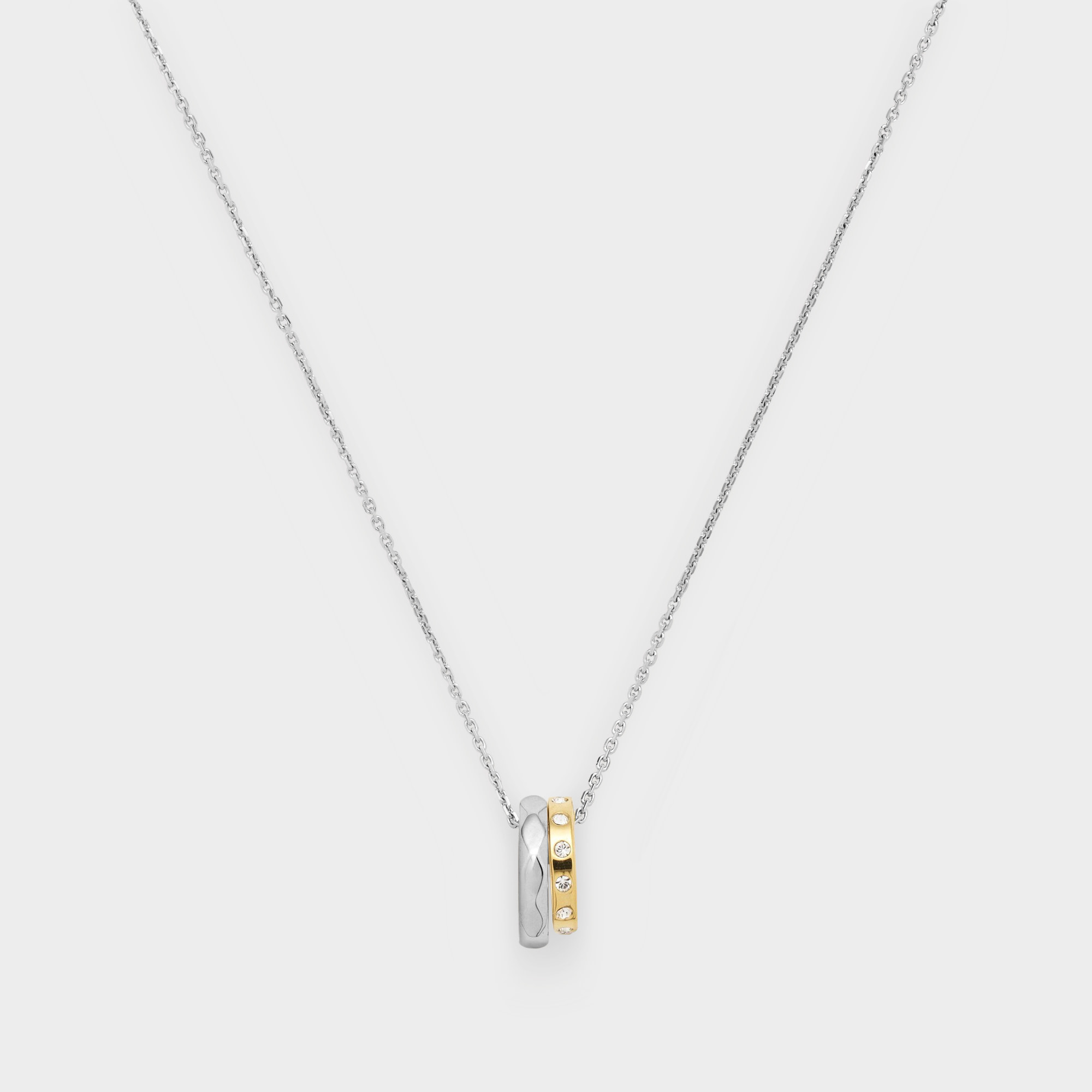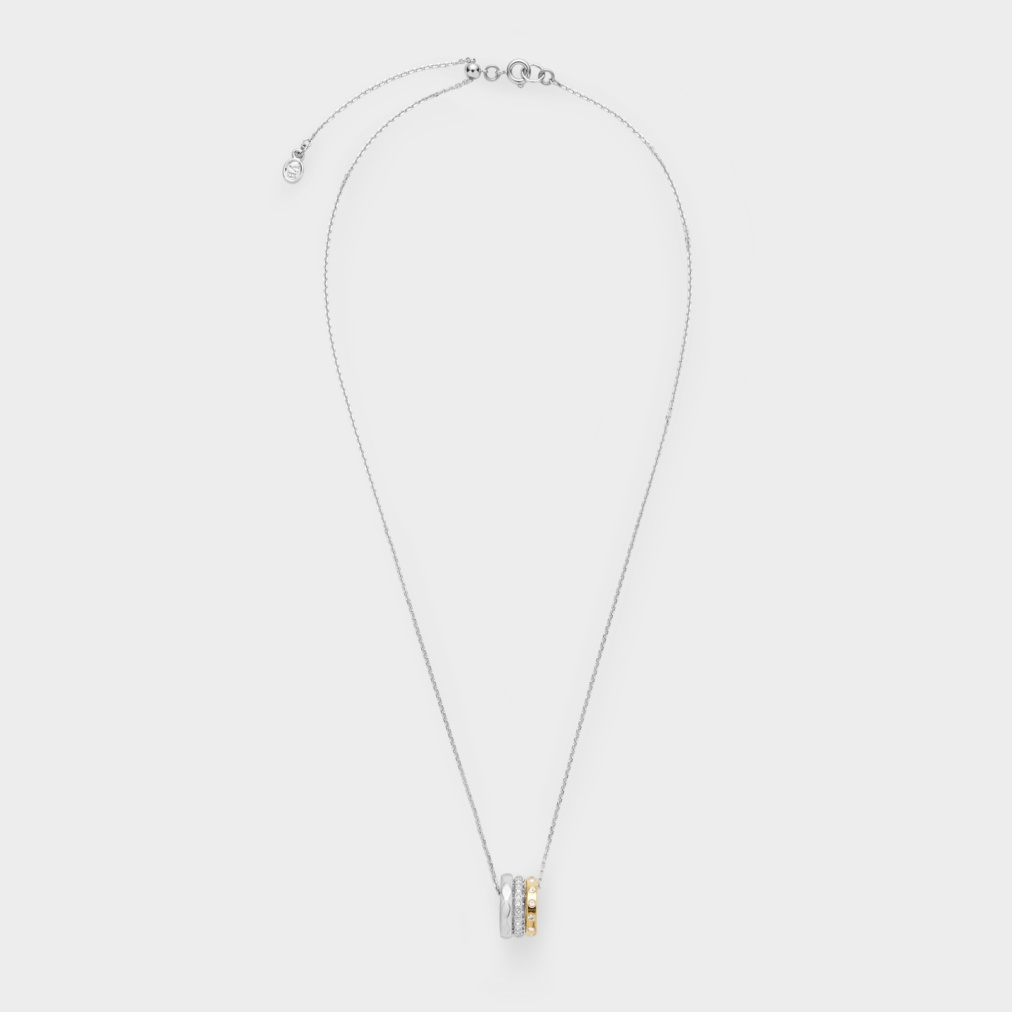 表情の異なる3つのリングをチェーンに通したペンダント。