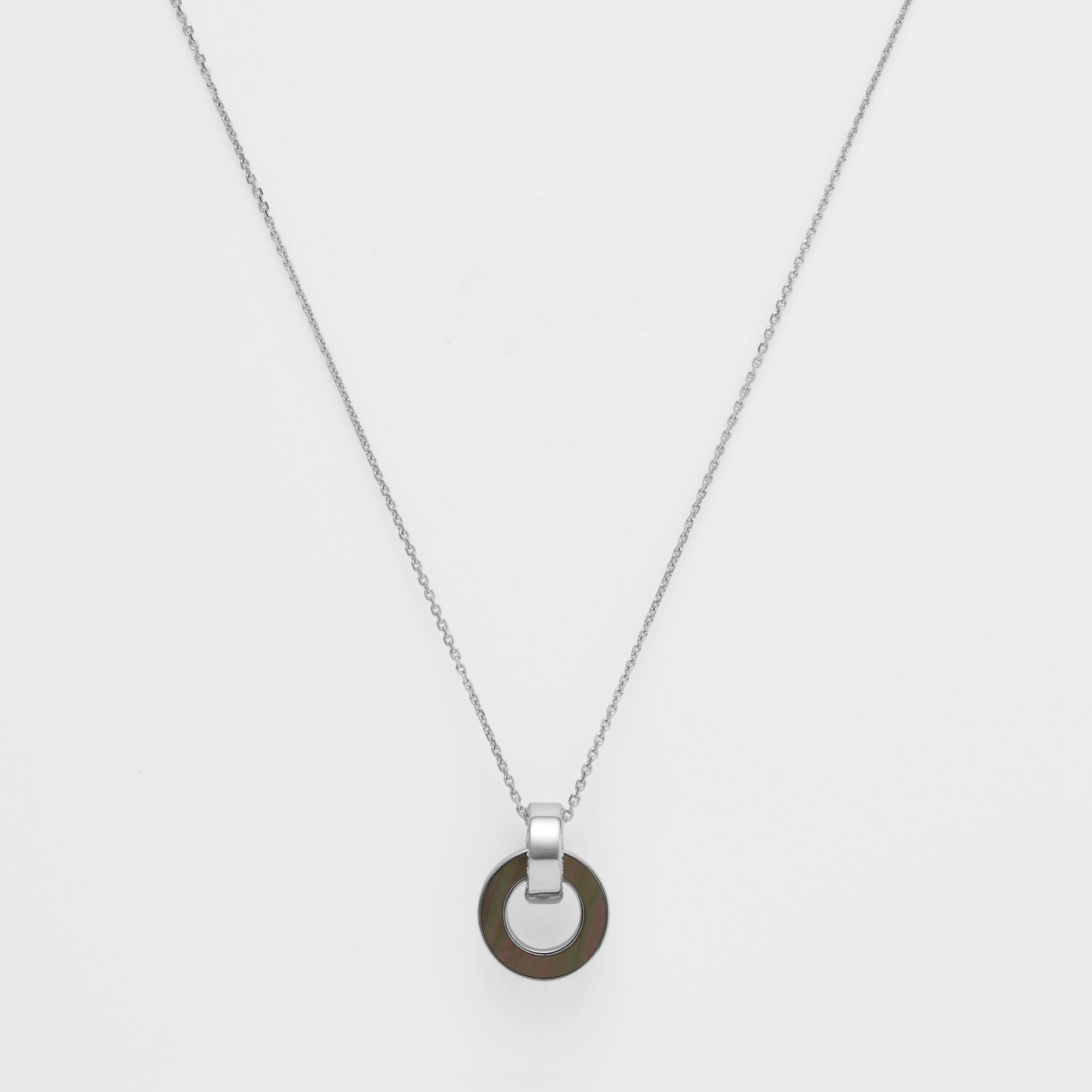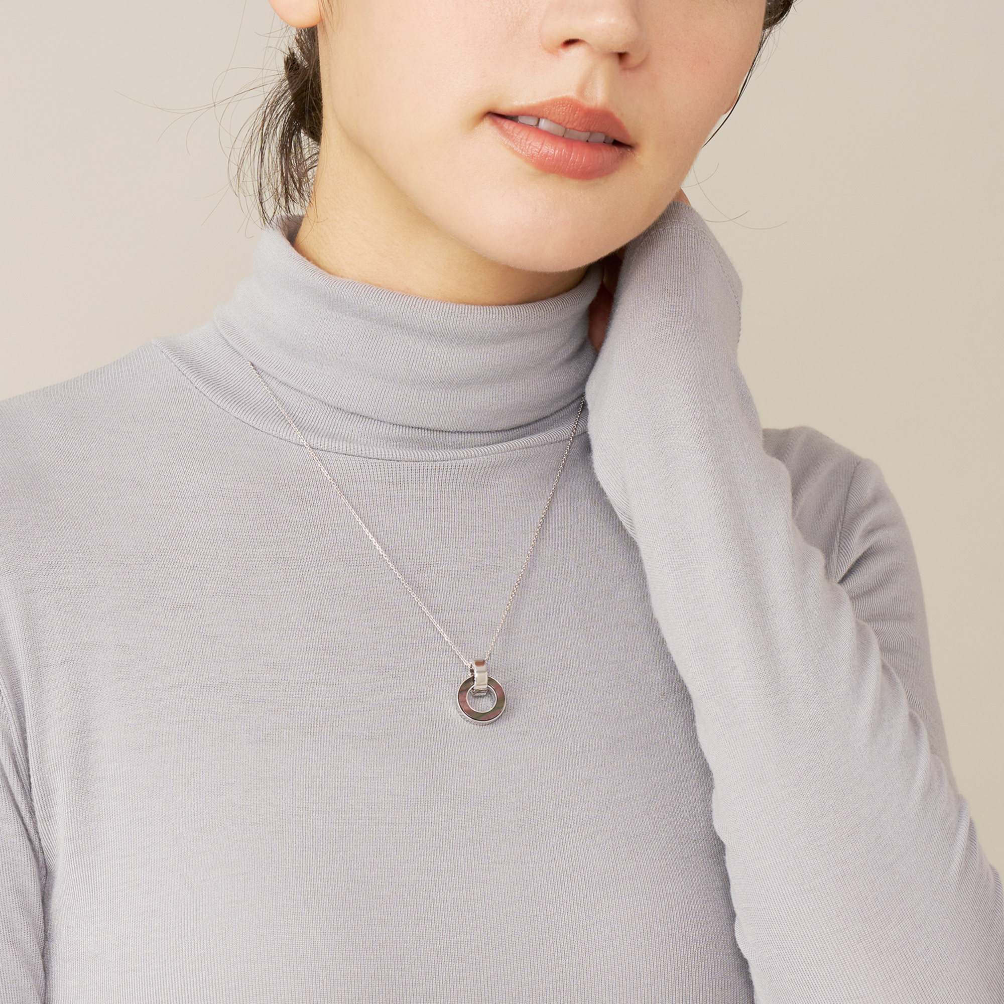 洗練されたサークルフォルムと黒蝶貝の奥深い輝きがシックなネックレス。