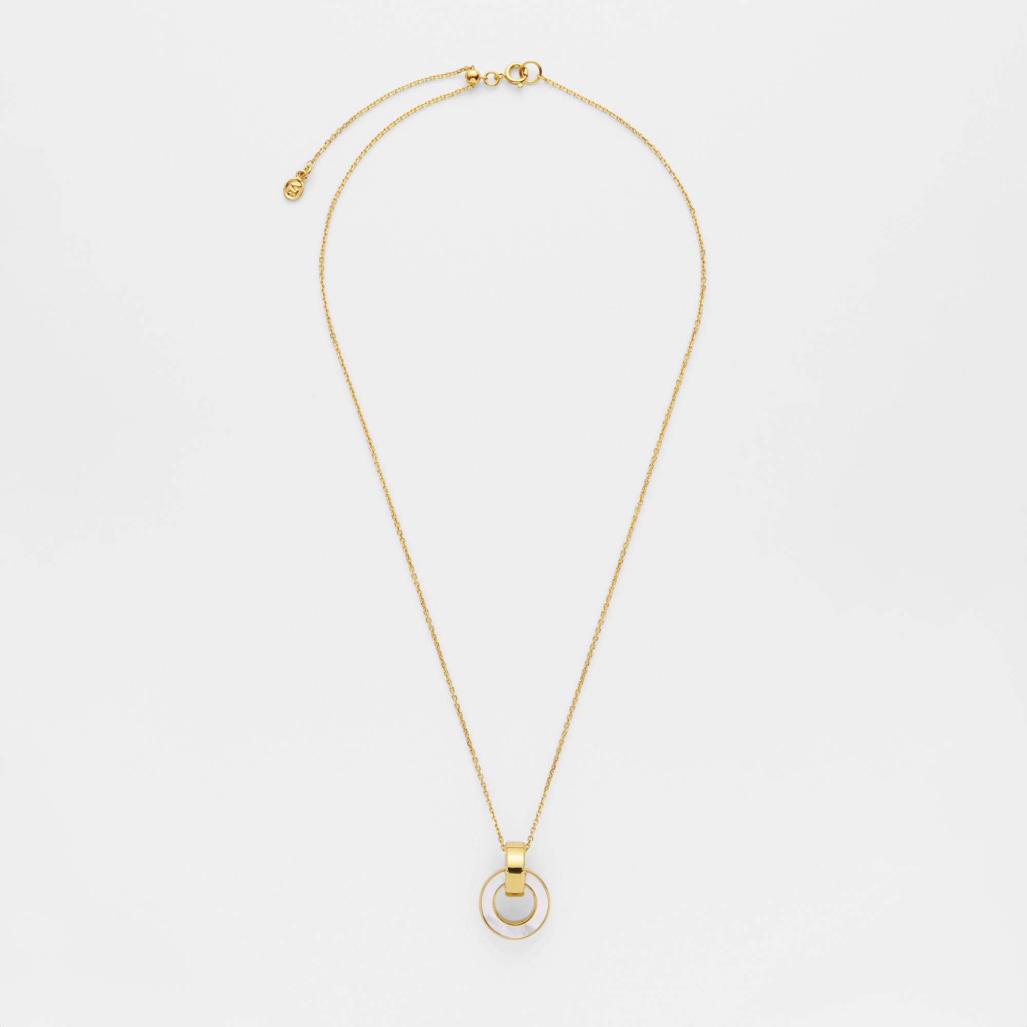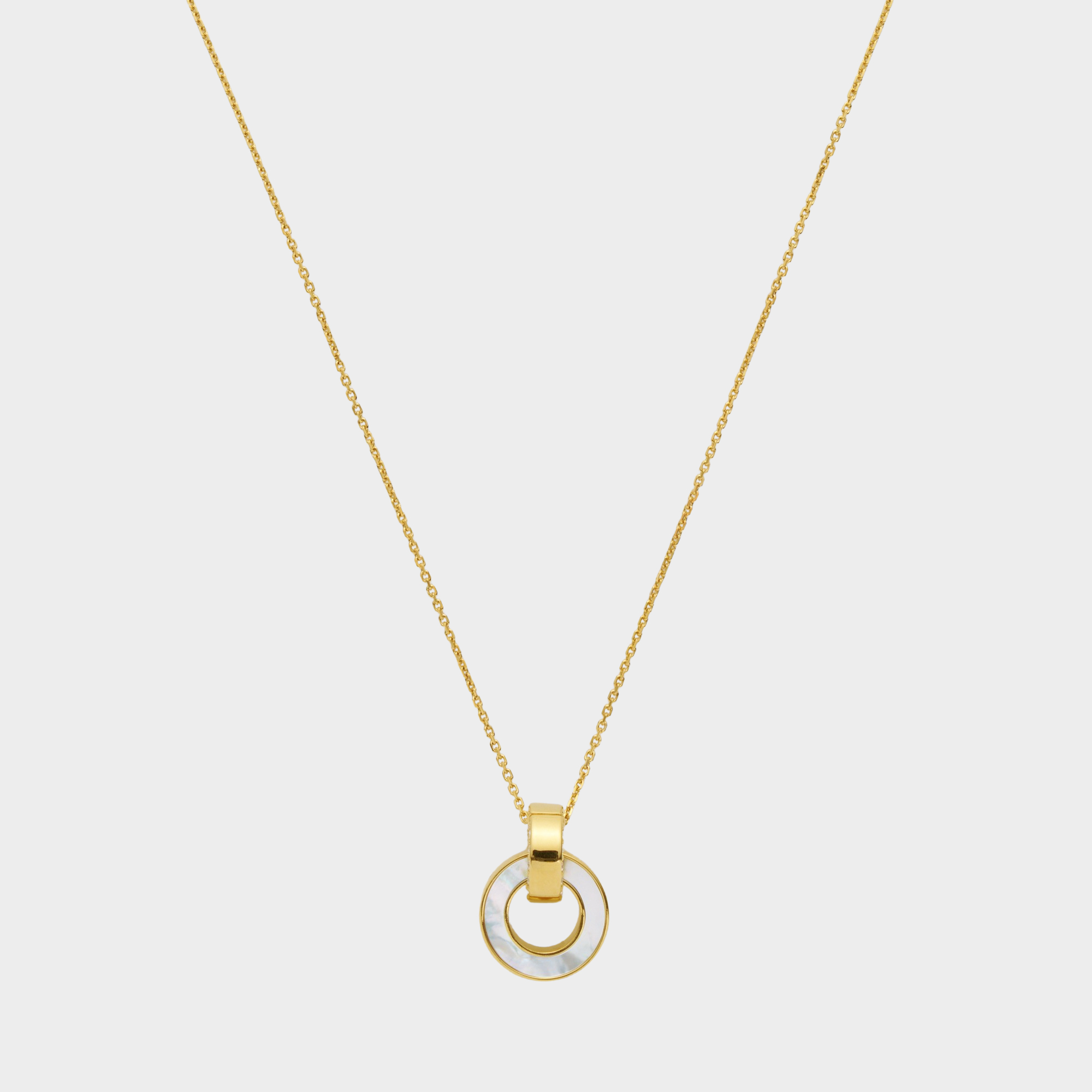 洗練されたサークルフォルムが、白蝶貝をより美しく魅せるネックレス。