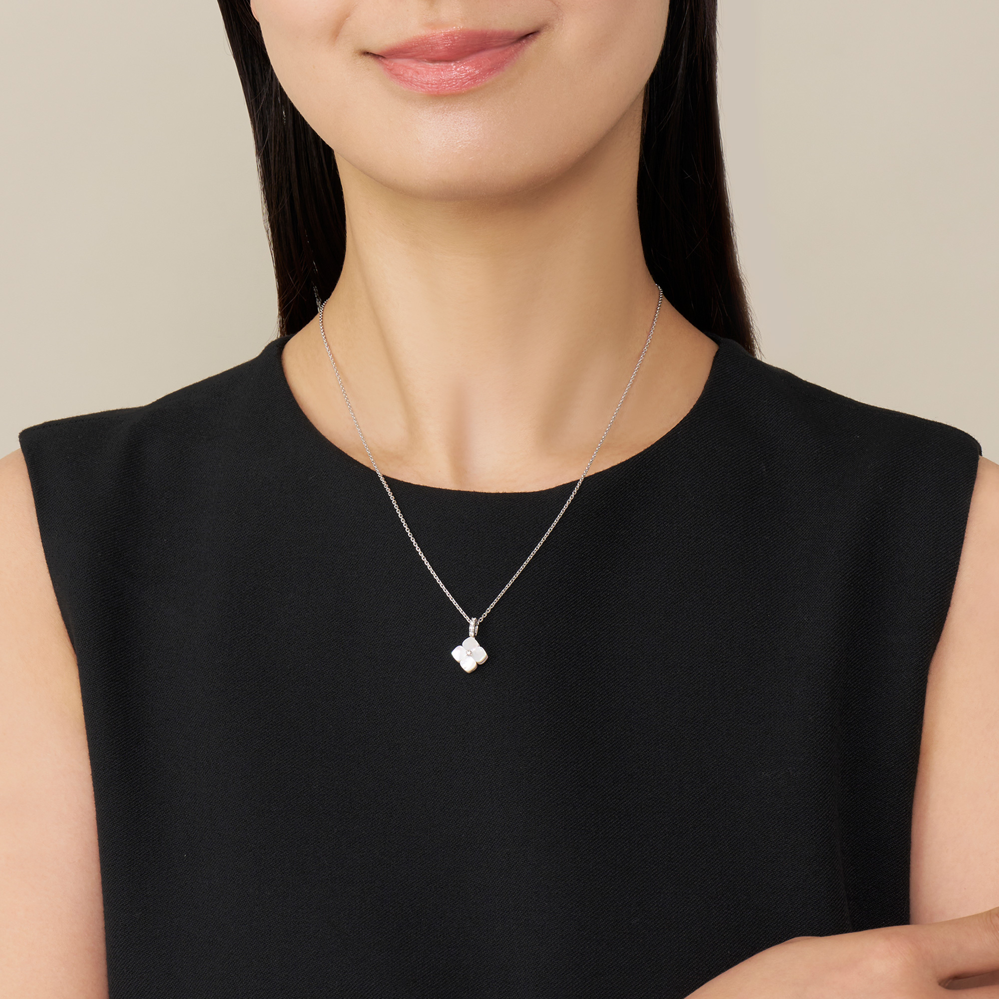 裏面には、天然ならではの虹彩が美しい白蝶貝をあしらい、異なる2つの表情を楽しめるリバーシブル仕様に仕上げました。