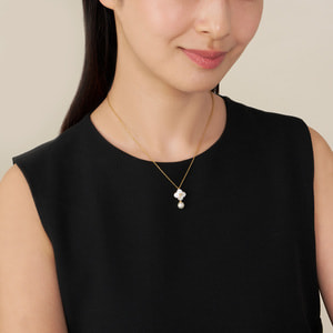 繊細なサイズながら、ぷっくりとした淡水パールの上品な輝きが胸元に程よい存在感をもたらします。