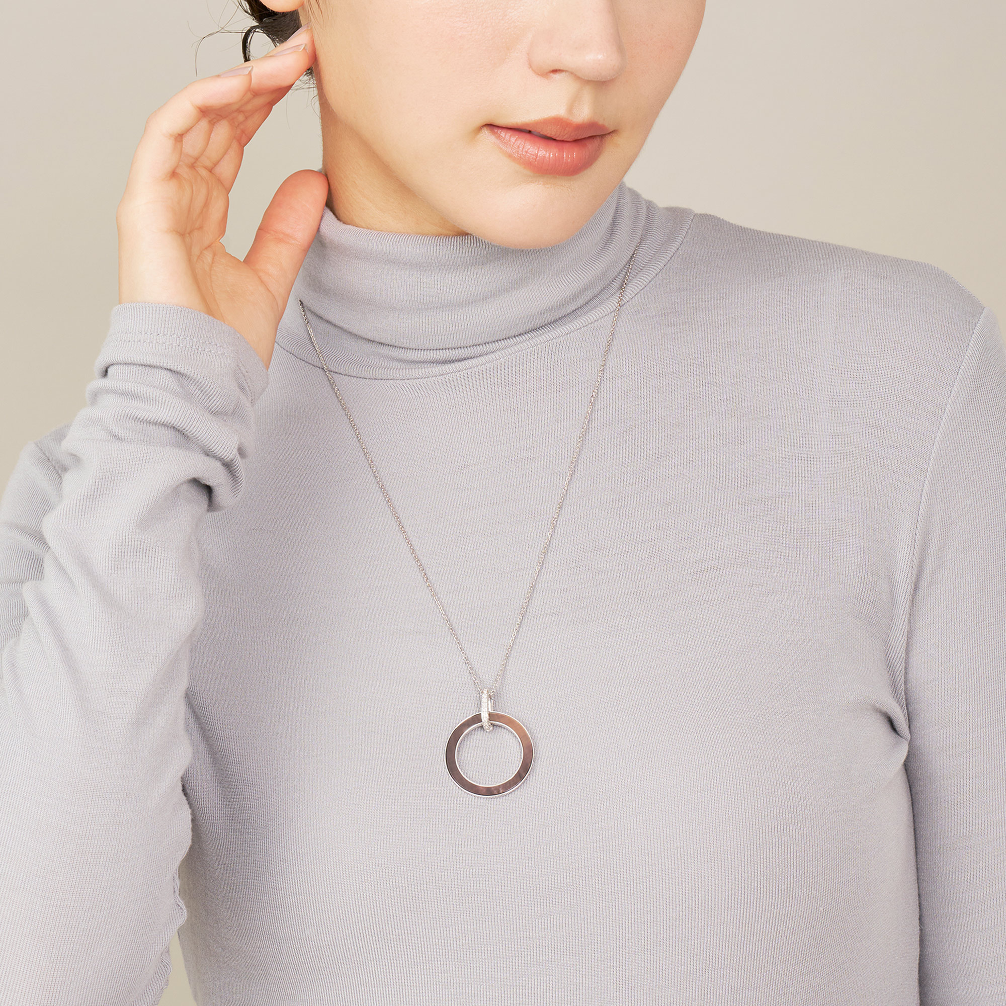 厚みを持たせた上品な存在感のサークルが、スタイリングに程よいスパイスを効かせるネックレスです。