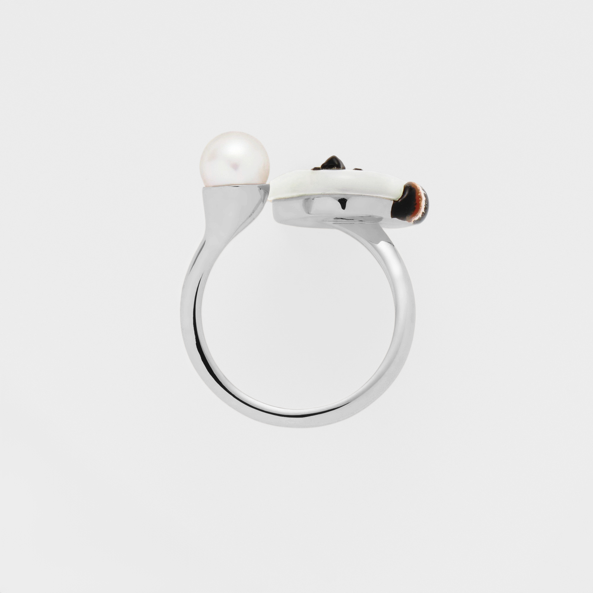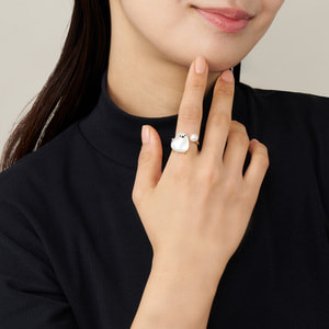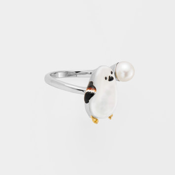 ドイツ・シュニール織のブランド「FEILER(フェイラー)」とのコラボレーションアイテム。雪の妖精と呼ばれるキュートなシマエナガを描いたヴァンドームブティックオリジナルのフェイラー製ポーチと、オリジナリティー溢れるアクセサリーとのスペシャルなセットです。空をきょとんと見上げるシマエナガのチャーミングな姿を白蝶貝で表現したリング。メタルはやわらかく指を包み込むような優美な曲線を描き、上質な淡水パールを雪に見立てました。ボディーは丸みのあるオリジナルカットの白蝶貝で、つぶらな瞳はブラックカラーのカットガラスで表現。尾羽は熟練した職人によって1つ1つ手作業で描き、リアルな羽色に仕上げました。隅々にまでクラフトマンの技が活かされた繊細な作りのアイテム。愛らしい雪の妖精を指にまとって。手のひらサイズのサークル型のポーチと一緒に、毎日のお出かけに一緒に連れて行きたくなるリングです。 ▼ FEILER Collaboration シマエナガ Vol.01 はこちらhttps://vendome.jp/vendome_boutique/feature/vb_feiler_shimaenaga