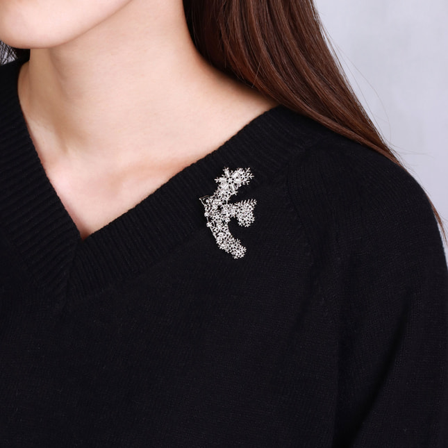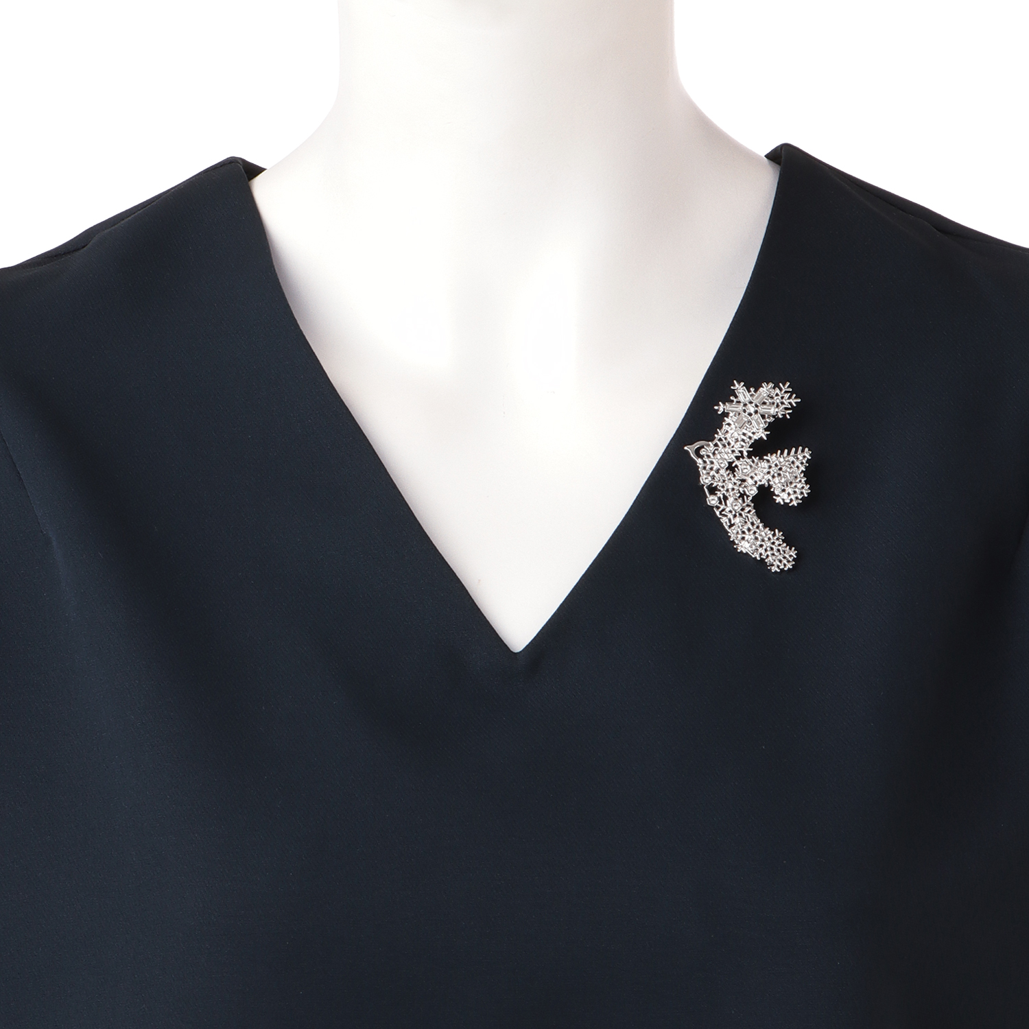 雪の結晶で、鳥の形をかたどったロマンティックなブローチ。