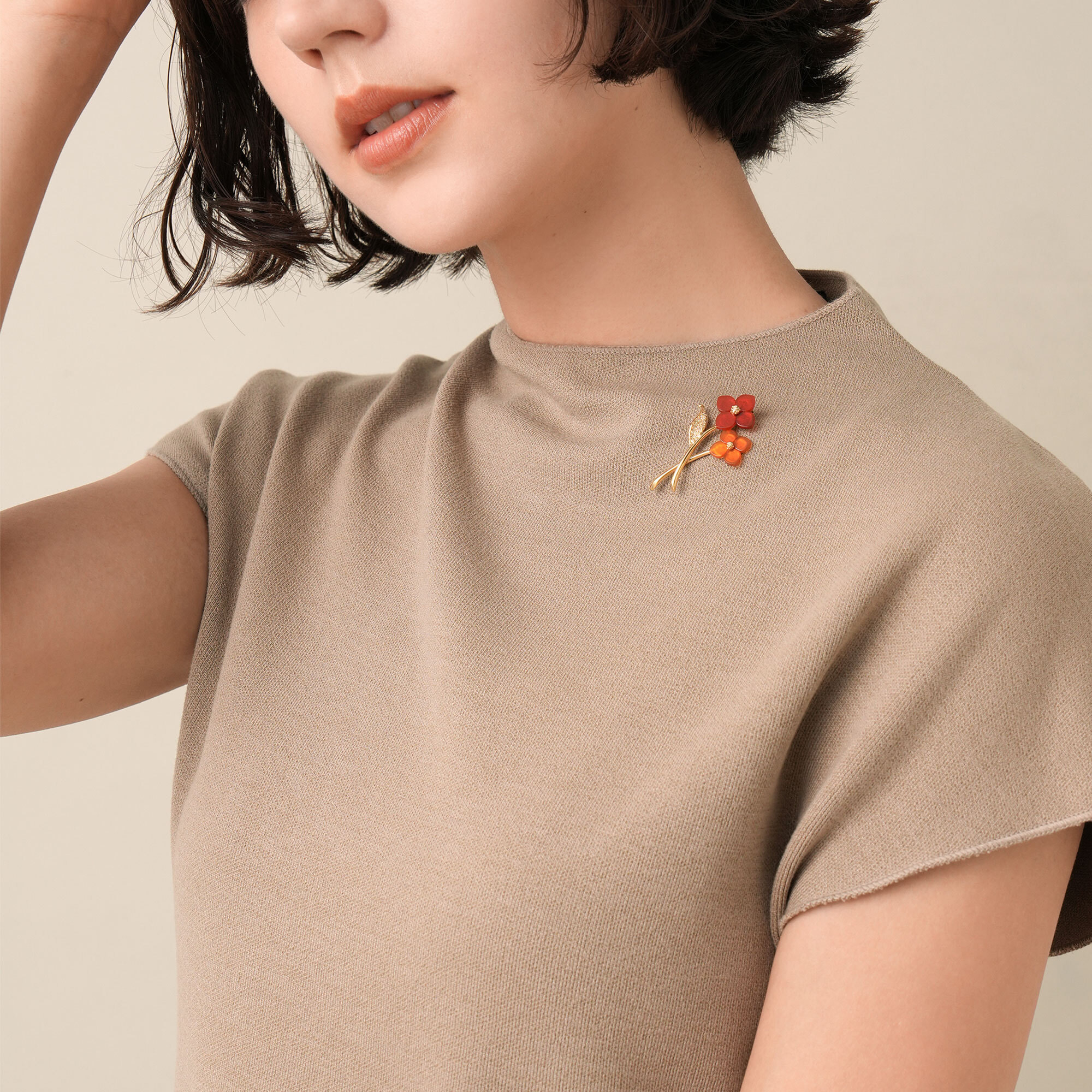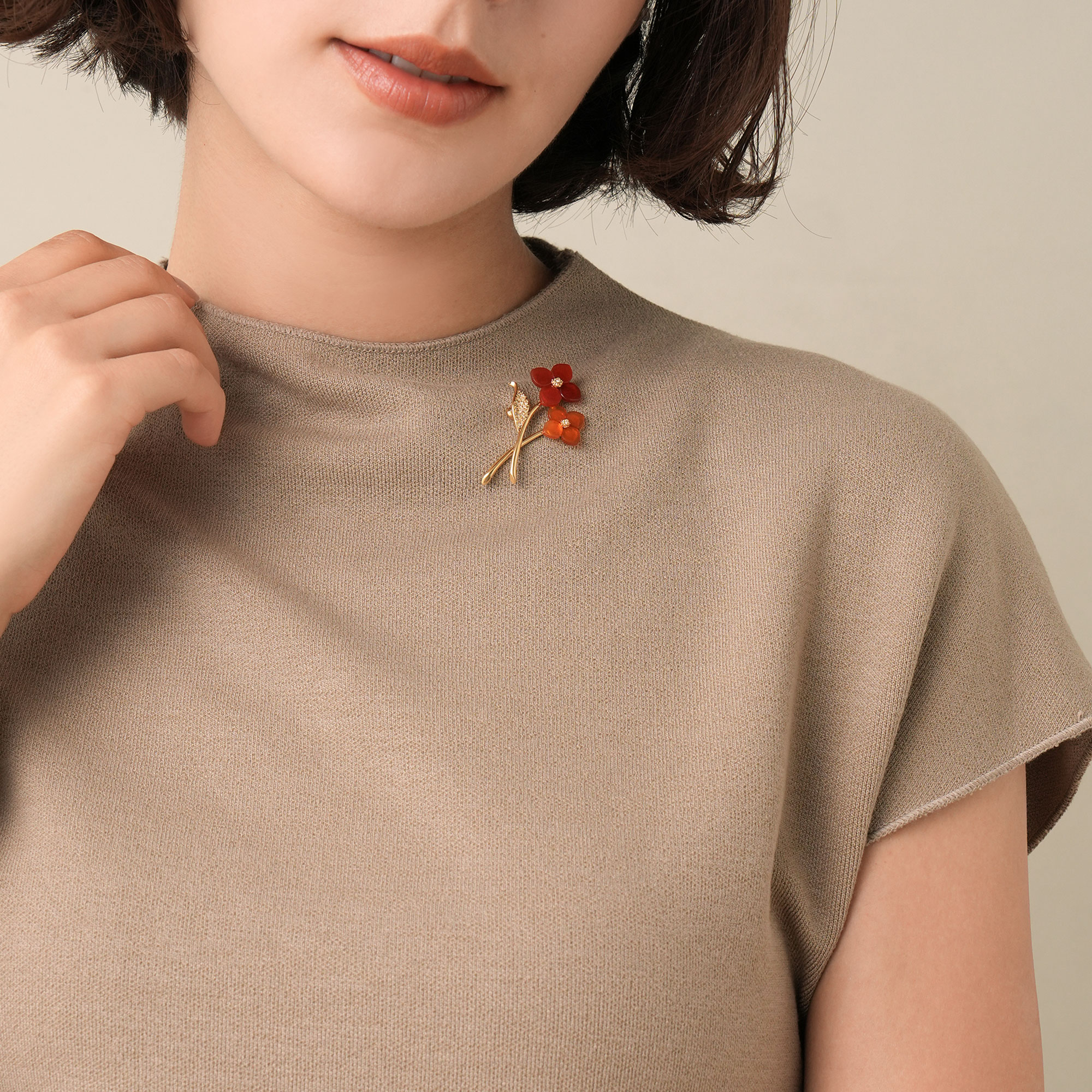 上品ながらも目を惹くブローチは特別な日の装いにもぴったり。