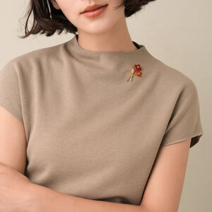 素材の上質感が際立ったブローチは、普段のスタイリングを上品にクラスアップしてくれるアイテムです。