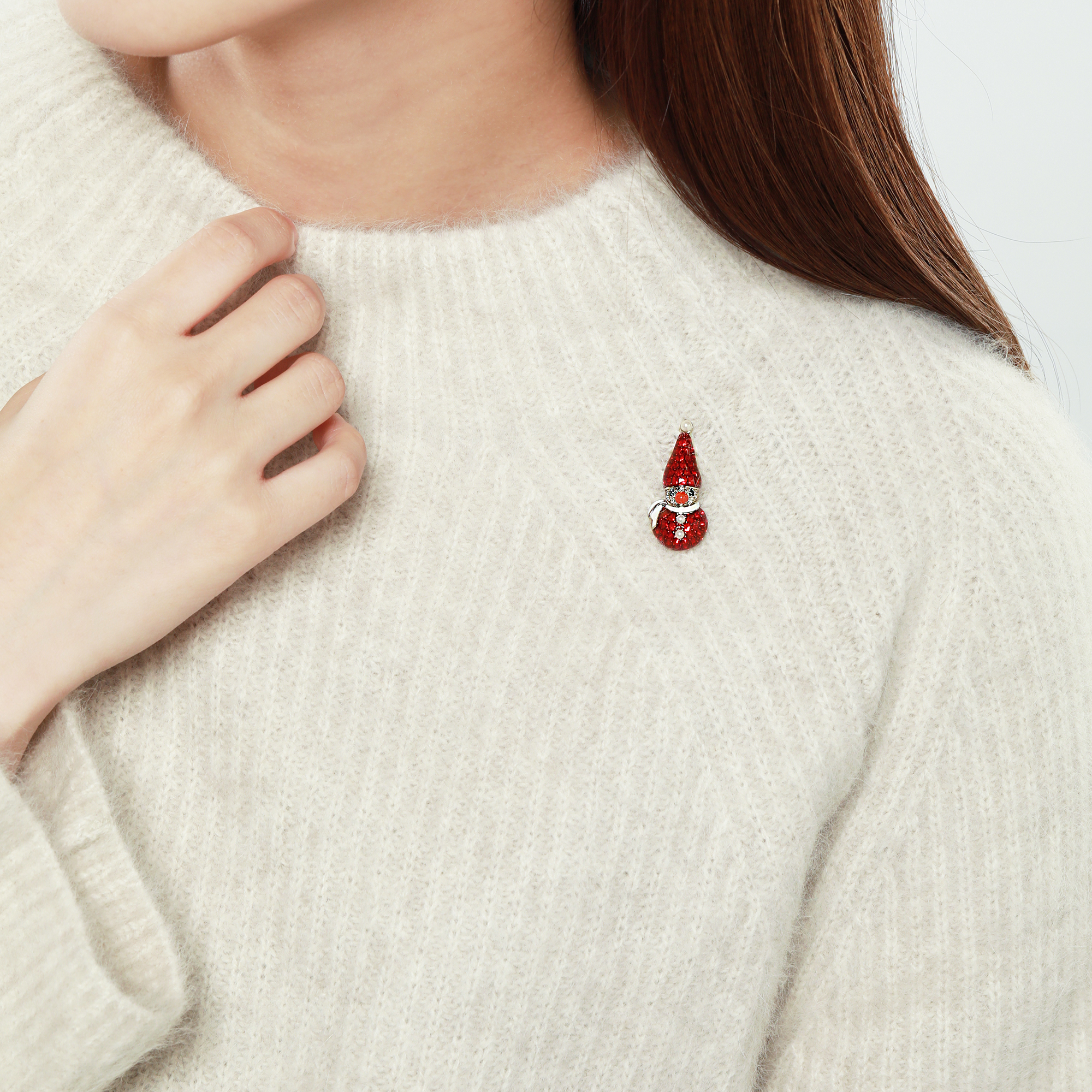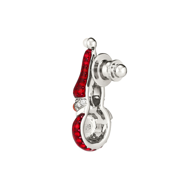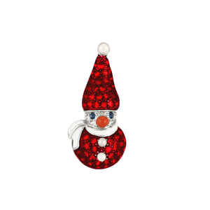 北欧のおとぎ話に登場する赤い帽子の妖精「トムテ」が雪だるまになったブローチ。