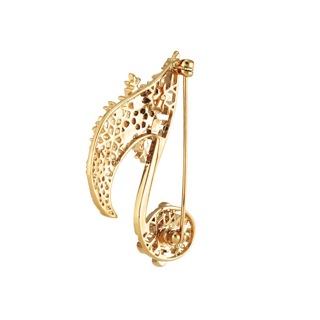 雪の結晶で、音符の形をかたどったロマンティックなブローチ。
