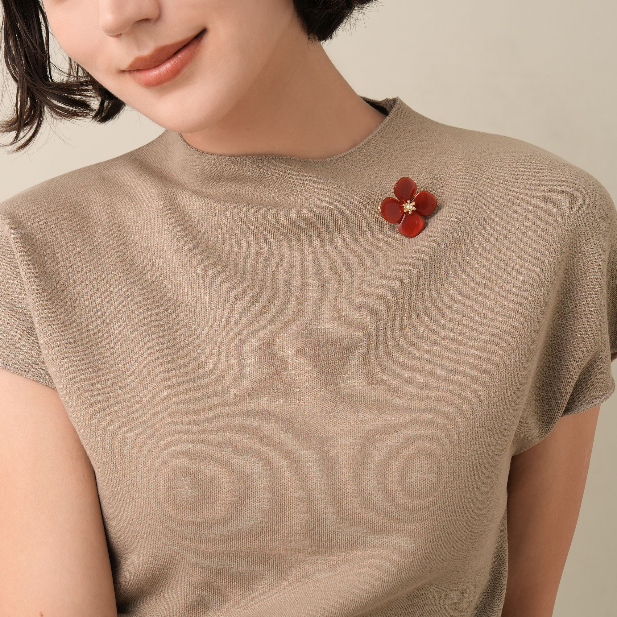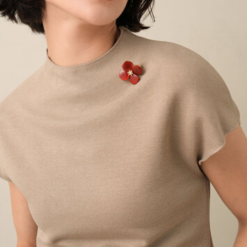 深みのあるカラーと、素材の上質感が際立つブローチは、はっと目をひく美しさと存在感です。