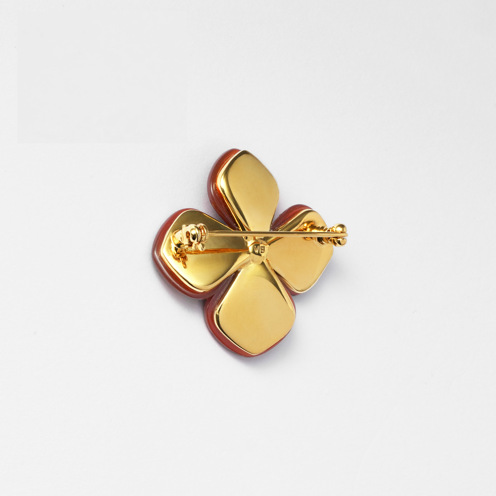 大ぶりで質の良いカーネリアンを1つ1つ丁寧にかたどったラグジュアリーなブローチ。