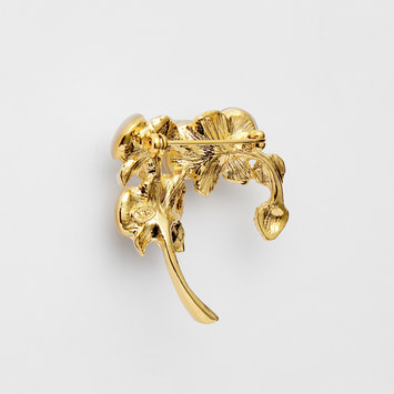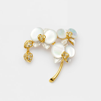 「幸福が飛んでくる」という花言葉を持つ、胡蝶蘭のブローチ。