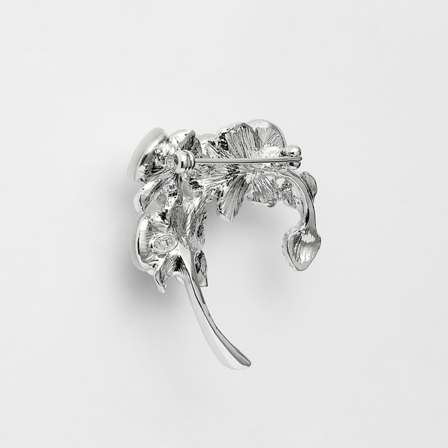 「幸福が飛んでくる」という花言葉を持つ、胡蝶蘭のブローチ。
