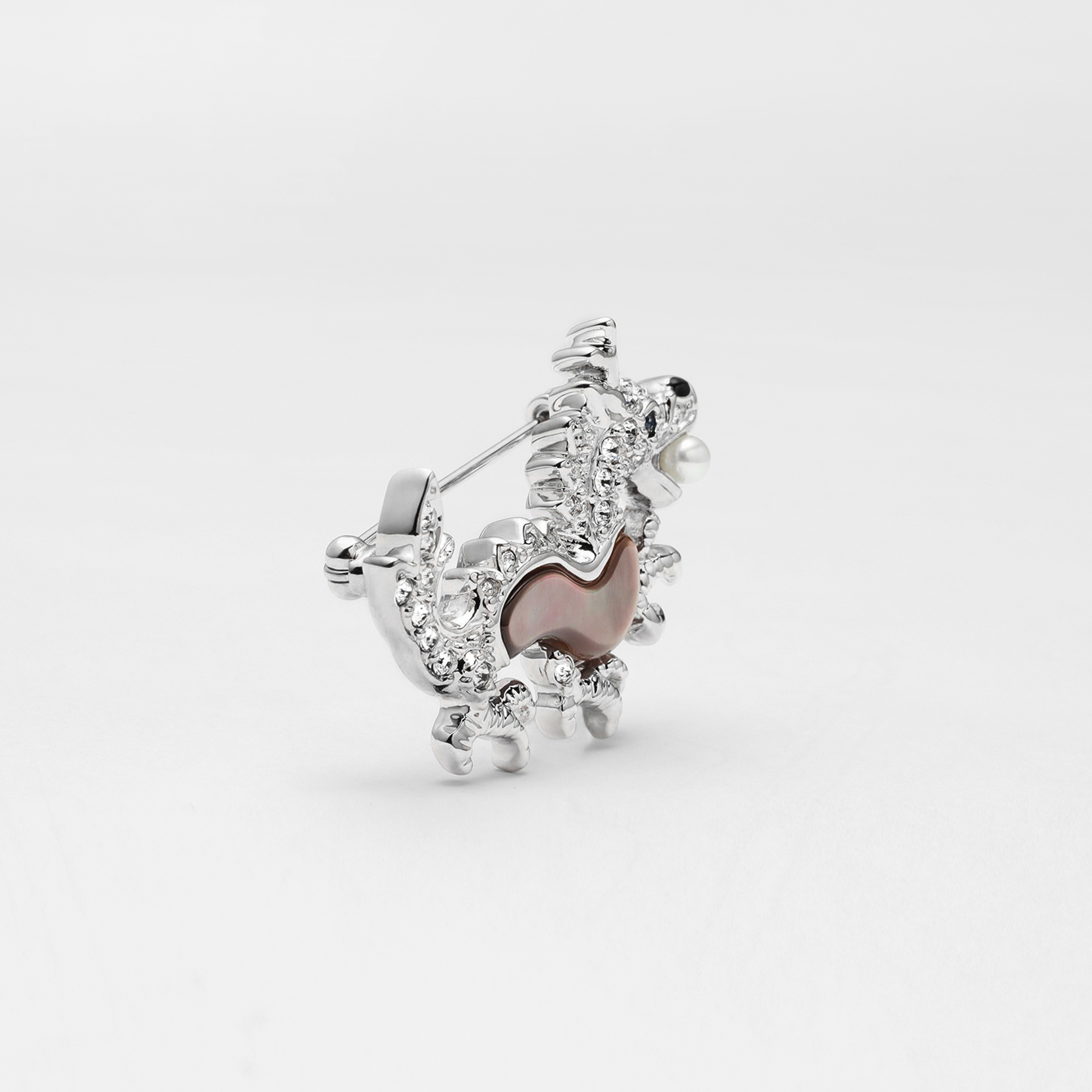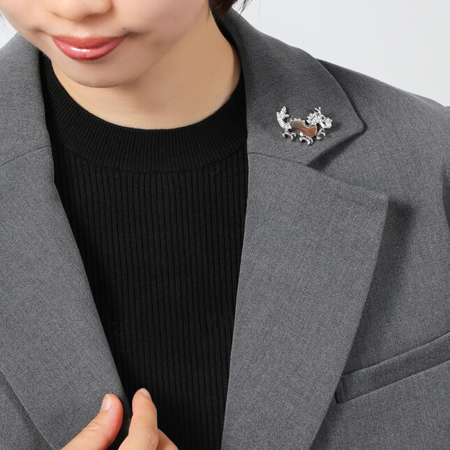 銀色のドラゴンをアイコニックにデザインしたブローチ。