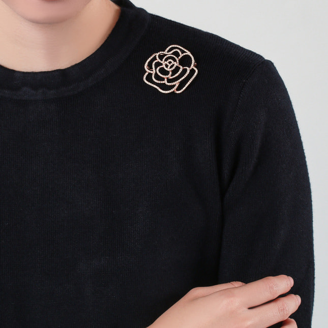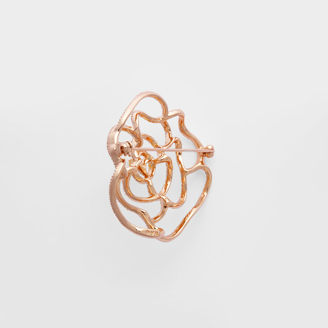 優雅に咲く薔薇の花を、繊細にかたどったブローチ。