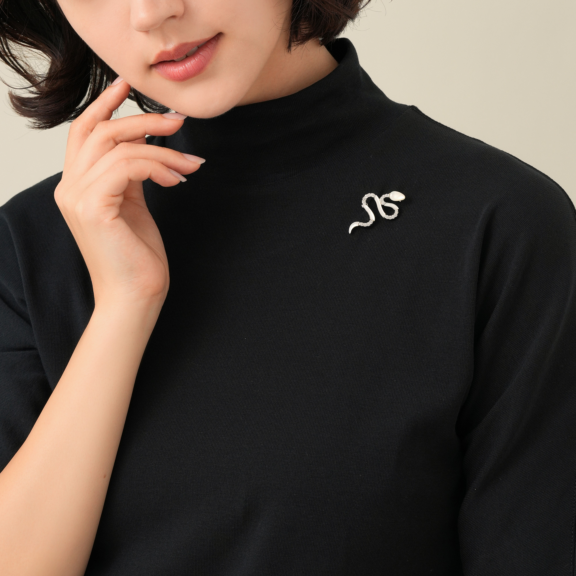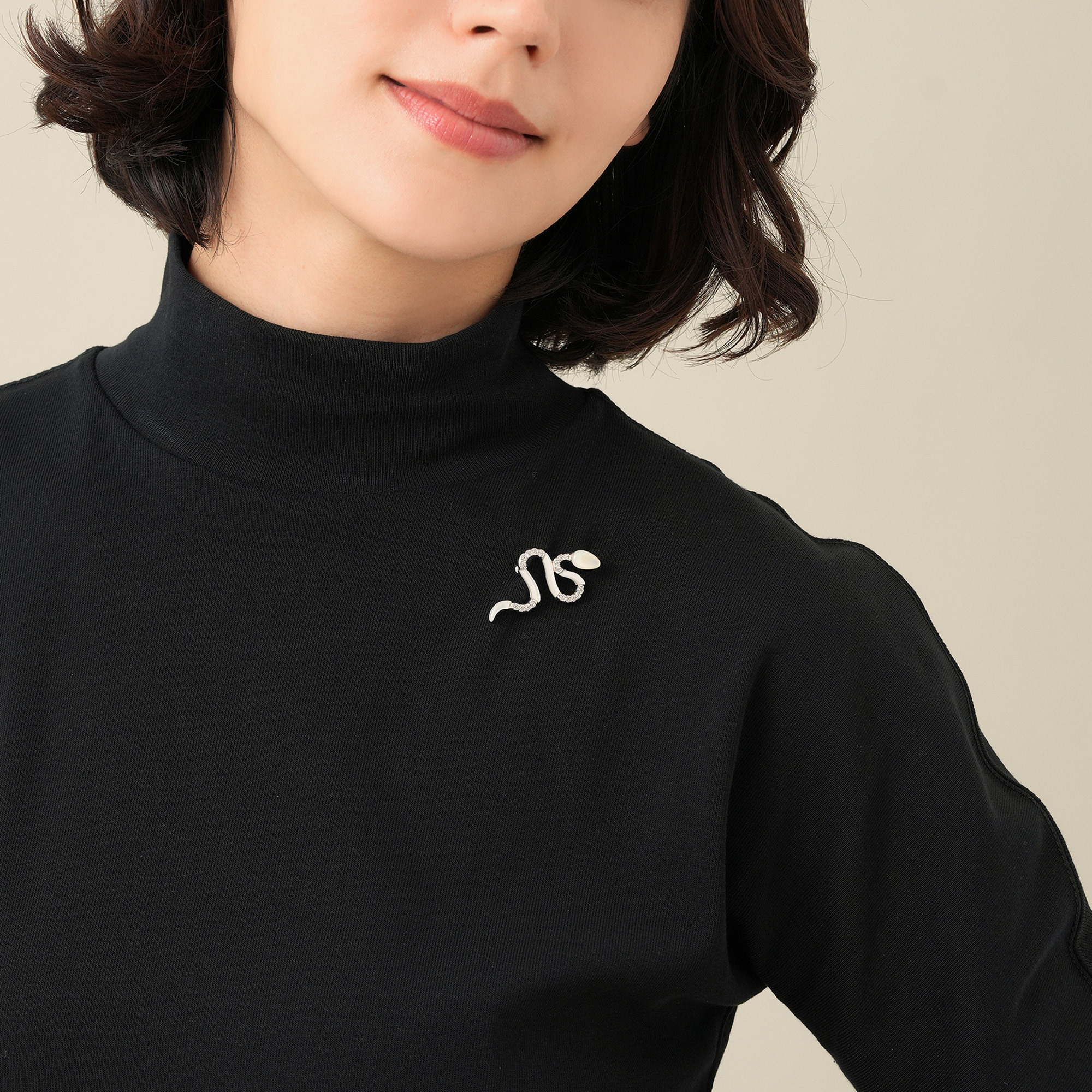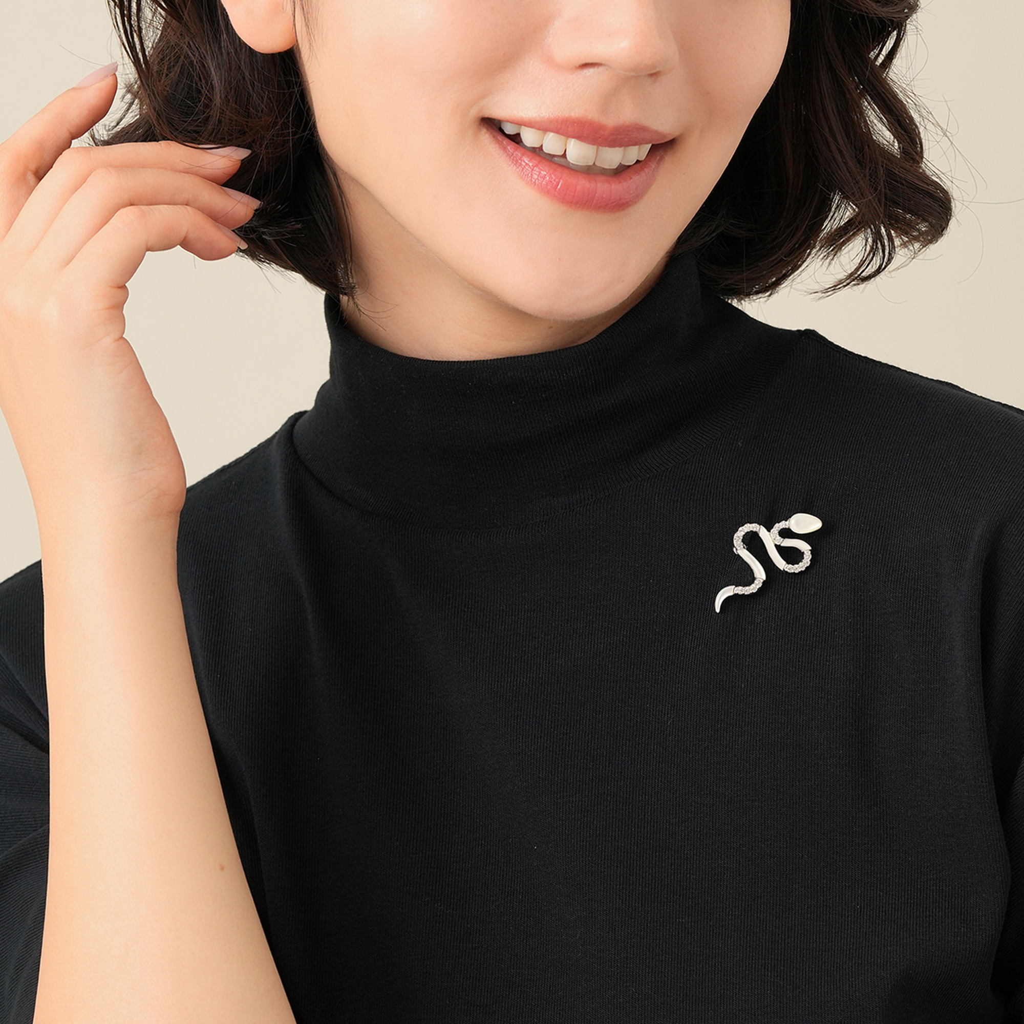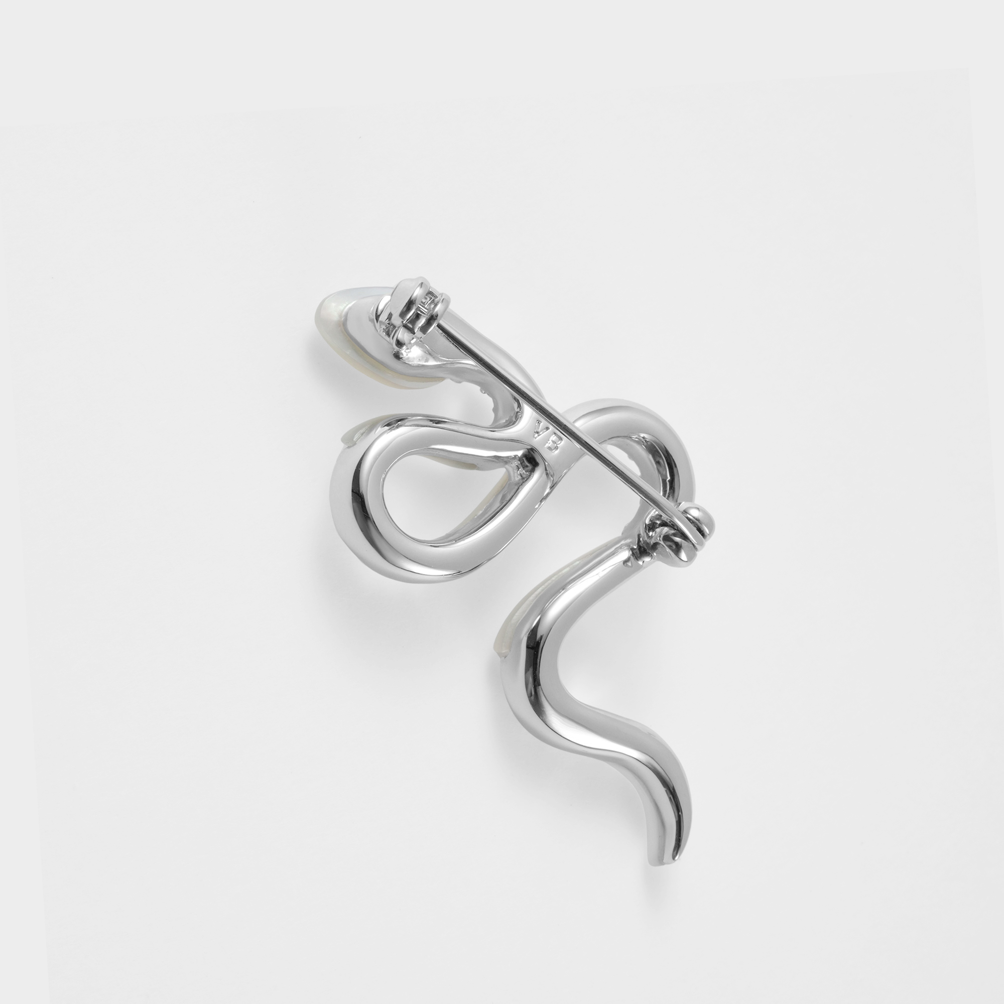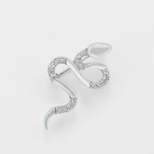 幸運を呼ぶホワイトカラーのヘビをアイコニックにデザインしたブローチ。