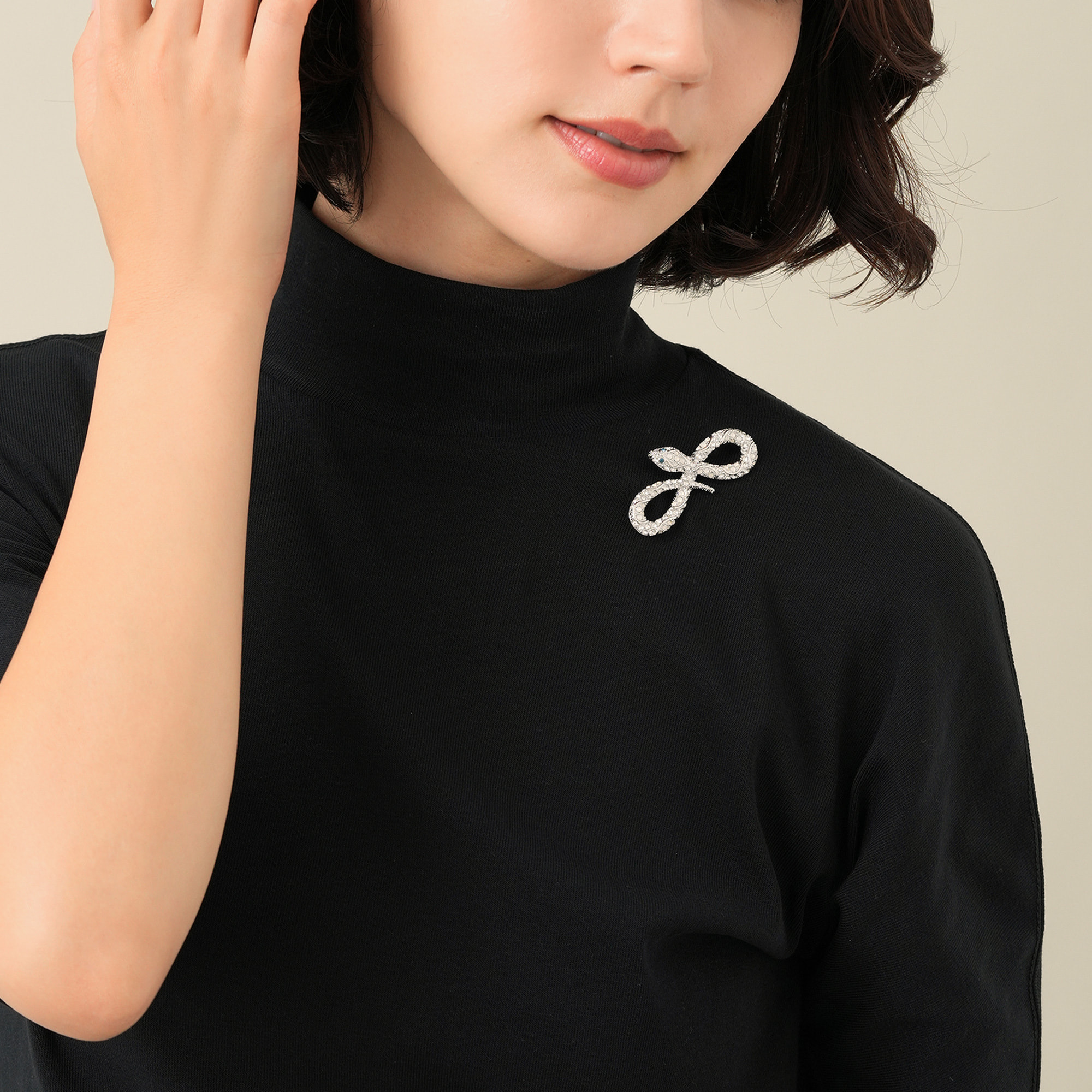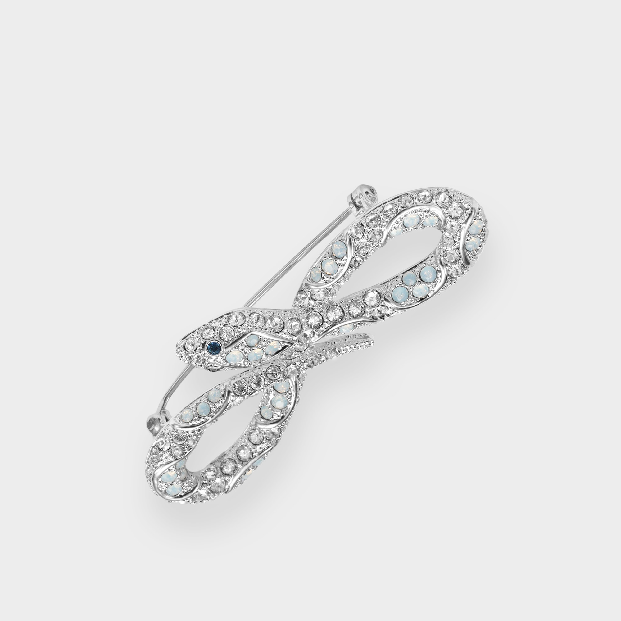 幸運を呼ぶホワイトカラーのヘビをアイコニックにデザインしたブローチ。