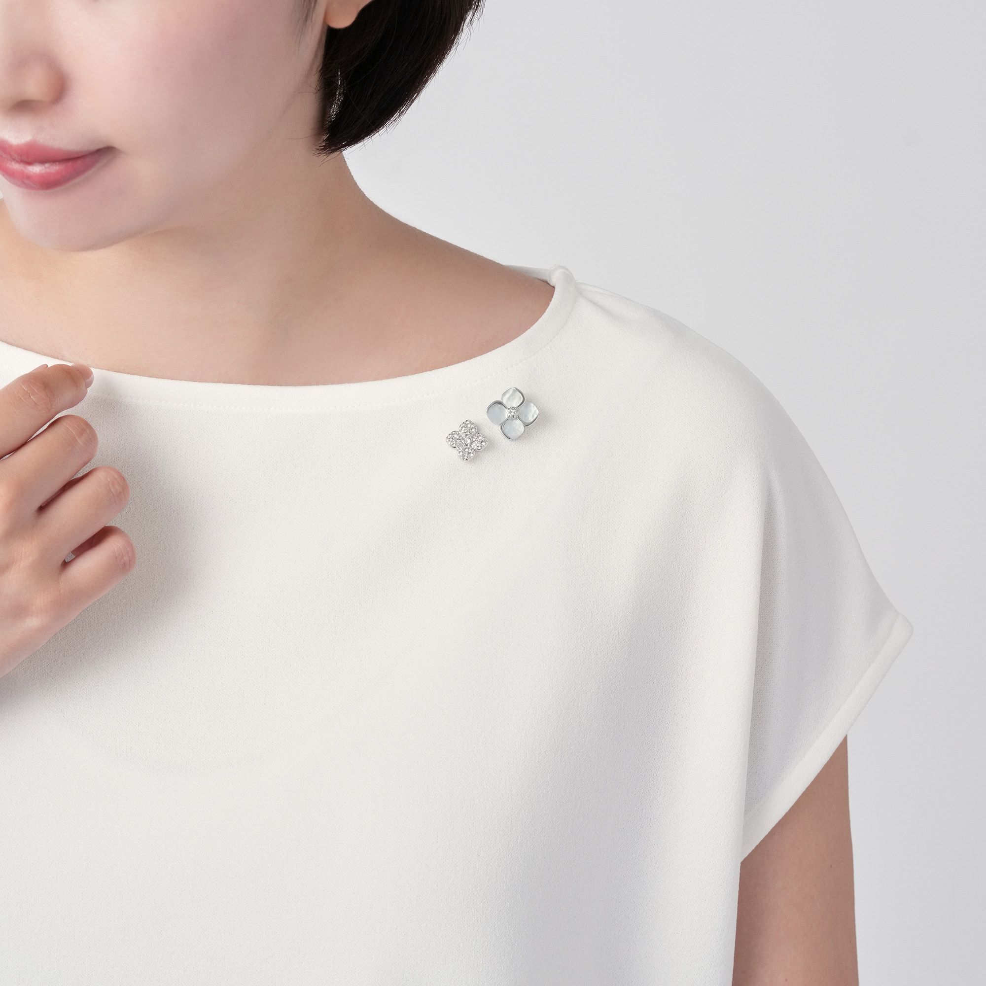 さりげないサイズ感と、素材の上質感が際立ったブローチは、晴れの席にも品良く華を添えます。