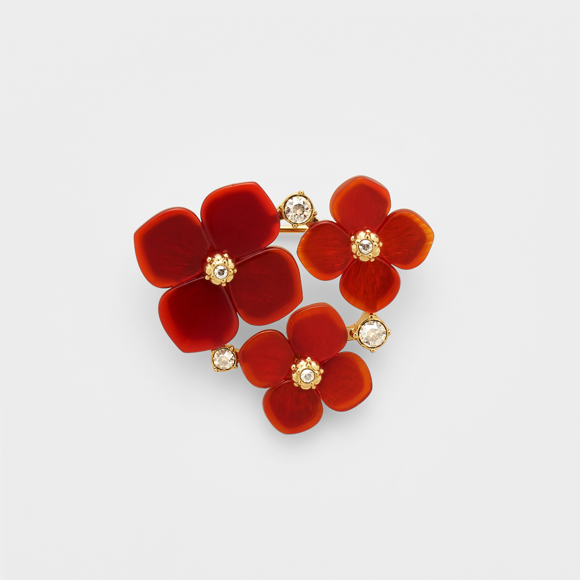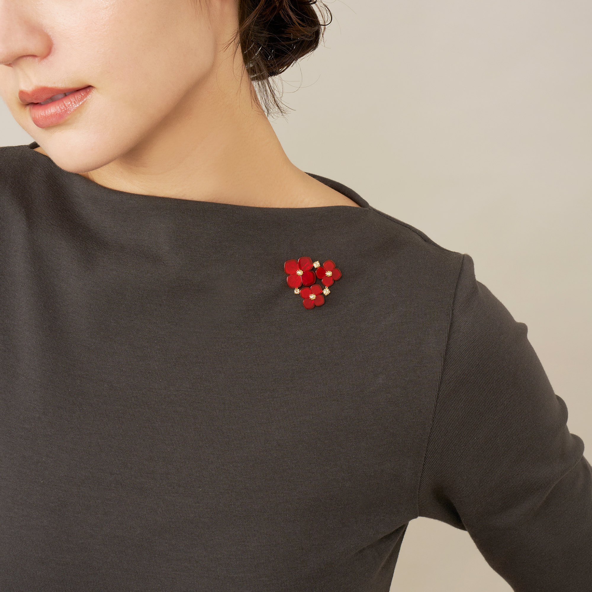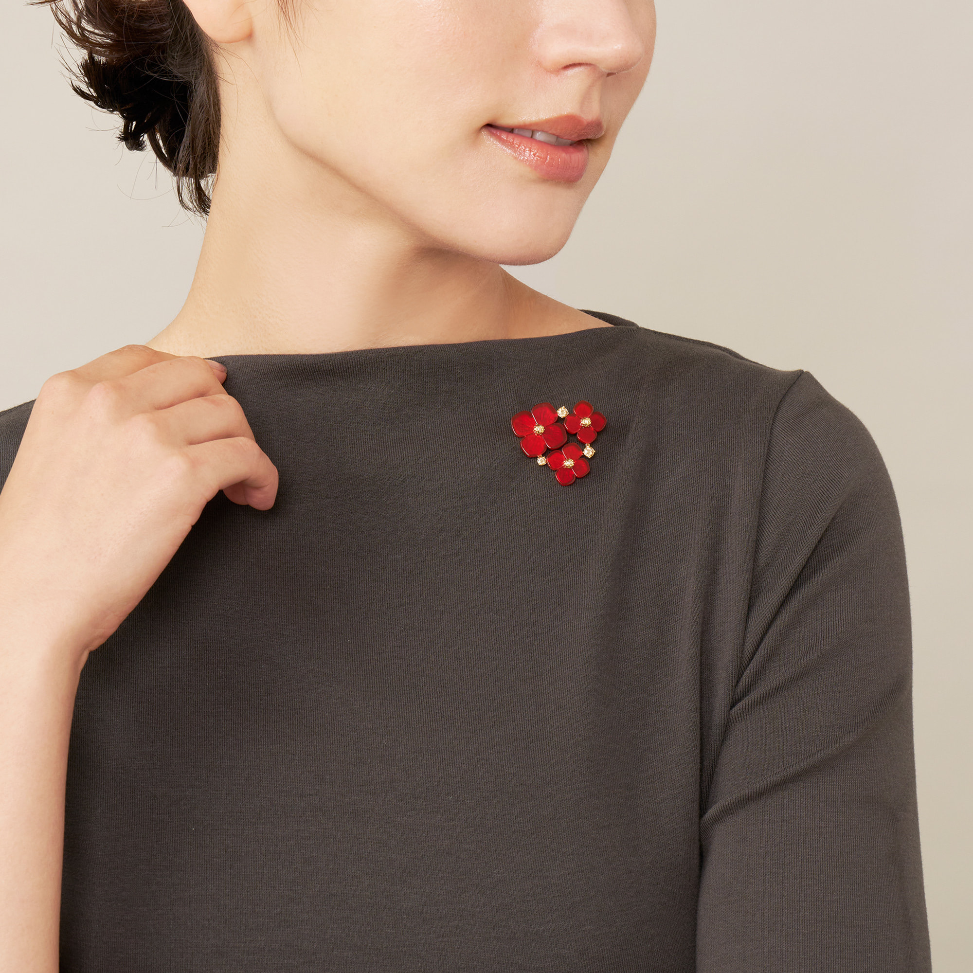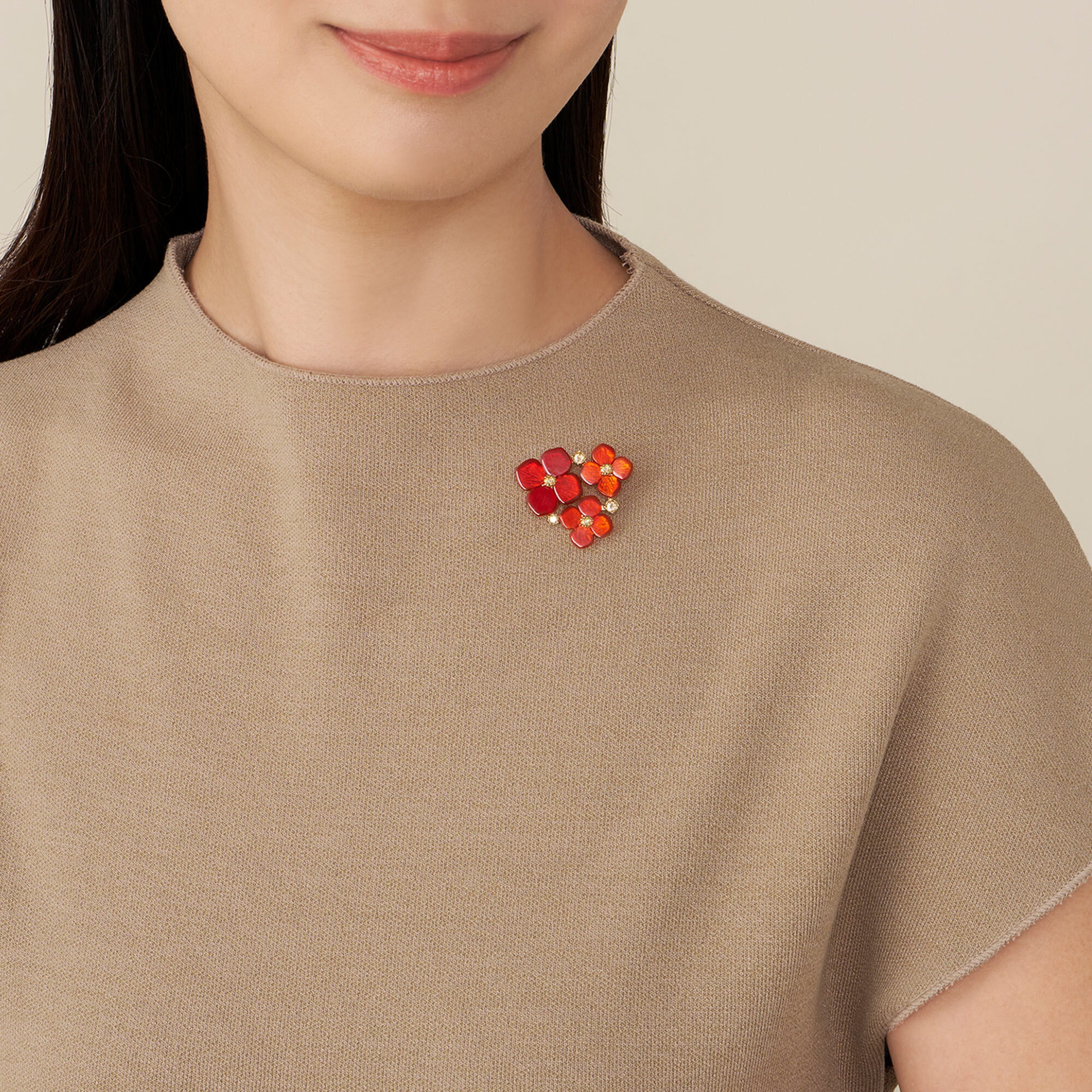 質の良いカーネリアンを1つ1つ丁寧にかたどり、大胆な配置でモダンに仕上げた花モチーフのブローチ。