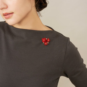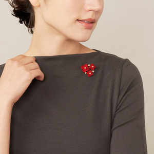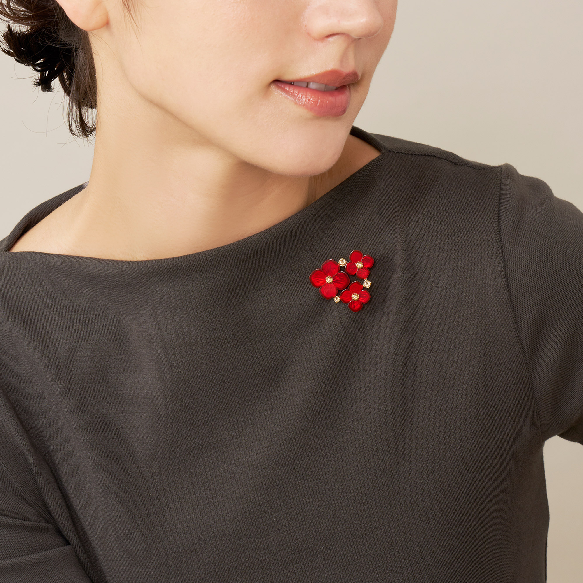 深みのあるカラーで、コーディネートに程よいアクセントを与えます。上品ながらも目を惹くブローチは特別な日の装いにもぴったり。