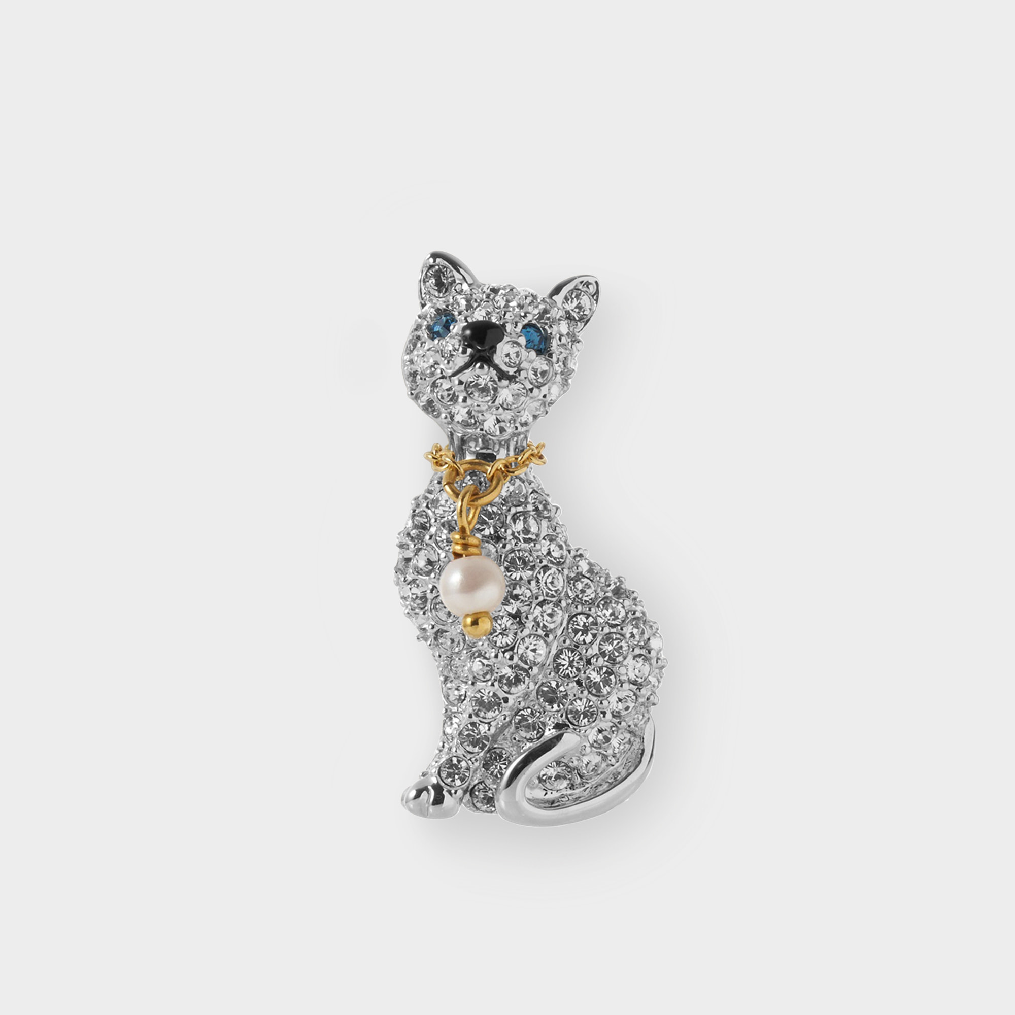 ドイツ・シュニール織のブランド「FEILER(フェイラー)」とのコラボレーションアイテム。猫たちが気ままに毛糸玉とじゃれている姿をデザインしたヴァンドームブティックオリジナルのフェイラー製ハンカチと、オリジナリティー溢れるアクセサリーとのスペシャルなセットです。白猫のしなやかなボディラインを表現したブローチ。散りばめられたカットガラスが上品な輝きを添えます。ブルーの瞳と、首輪に揺れるパールのチャームがアクセント。大切な方へのギフトにも最適です。 ▼ FEILER Collection <LOVELY DOGS Vol.01> はこちらhttps://vendome.jp/vendome_boutique/feature/boutique_feiler2 ▼ FEILER Collection <LOVELY DOGS Vol.02> はこちらhttps://vendome.jp/vendome_boutique/feature/boutique_feiler3 ▼ FEILER Collection <PLAYING CATS> はこちらhttps://vendome.jp/vendome_boutique/feature/boutique_feiler