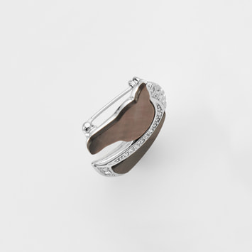 オリジナルカットの黒蝶貝を熟練の職人がセッティングしました。