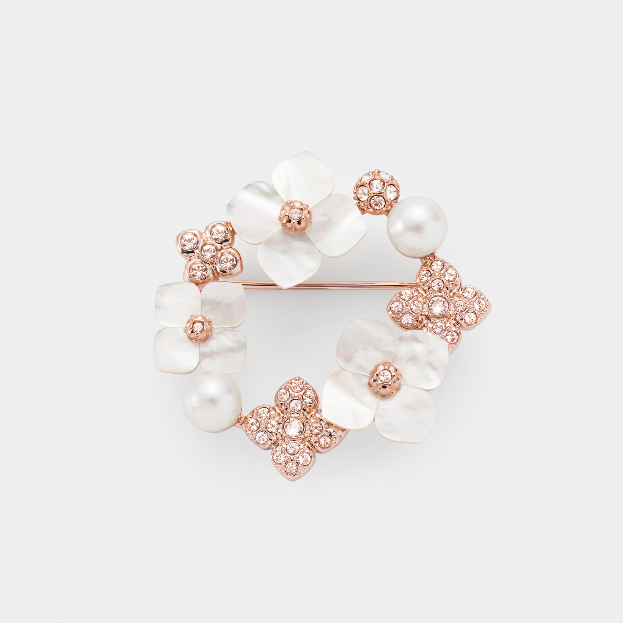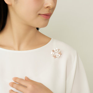 フォーマルスタイルの主役として胸元に華を添えたり、普段の装いに効かせのアイテムとして取り入れたりと、洗練された美しさでスタイリングを格上げしてくれるブローチです。