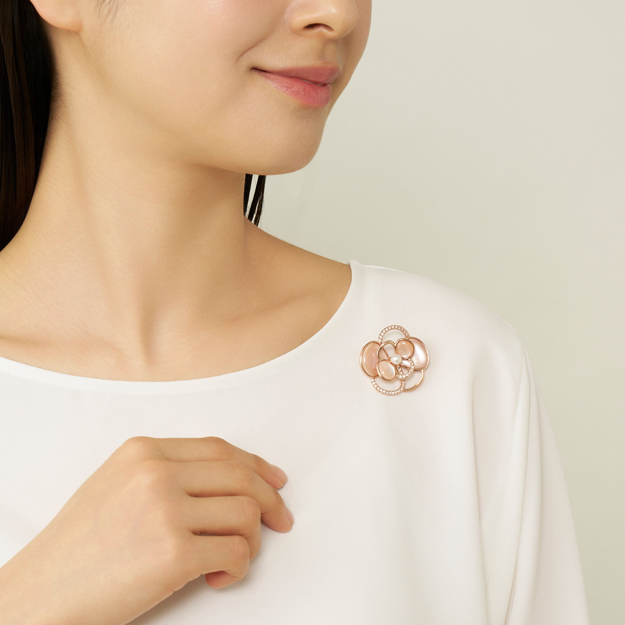 「控えめな優しさ」の花言葉を持つカメリアの、瑞々しく上品な美しさを表現しました。