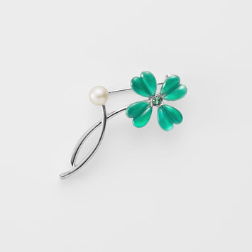グリーンカルセドニーの鮮やかで透明感のあるグリーンと、愛らしいクローバーのフォルムがマッチした、ノーブルな魅力溢れるデザイン。
