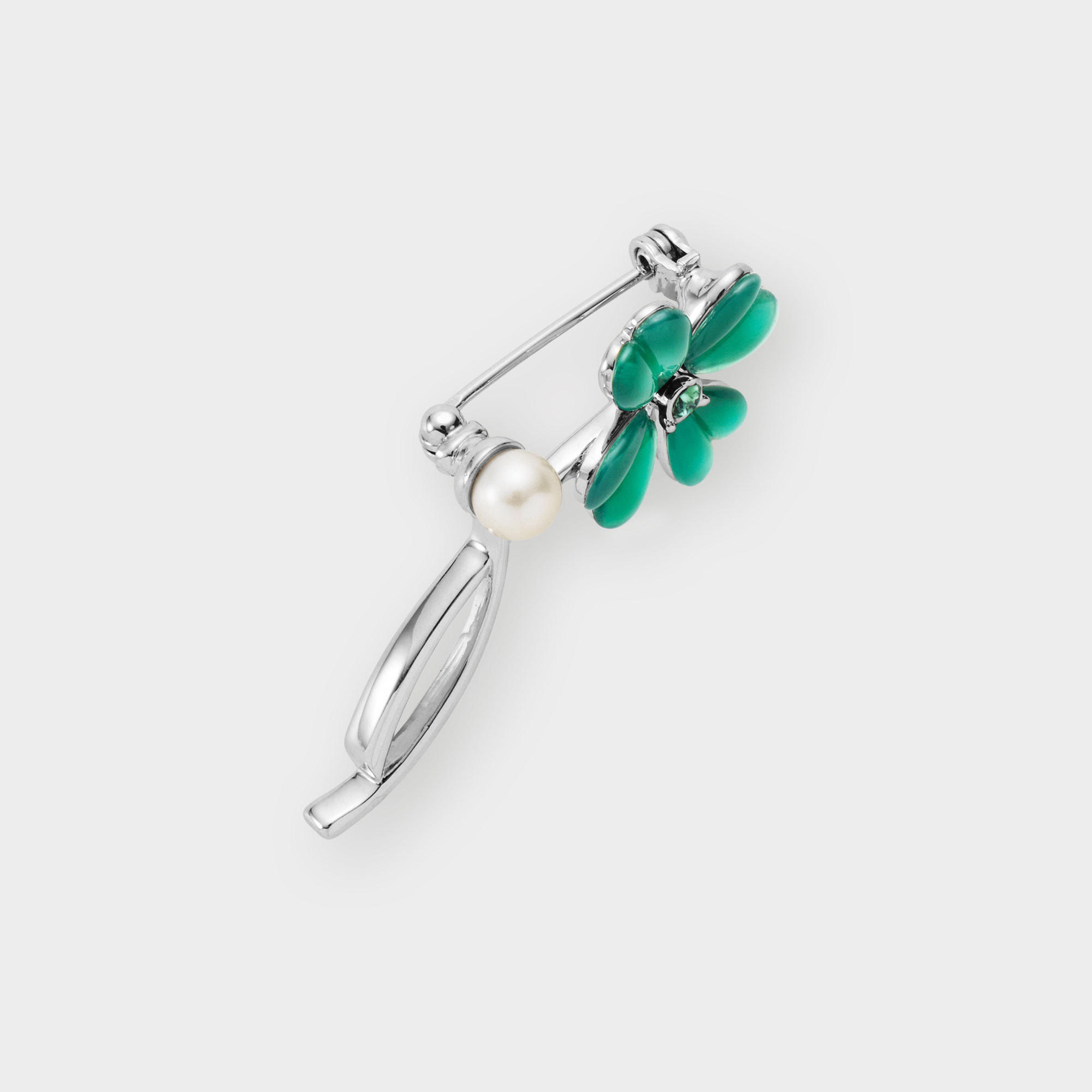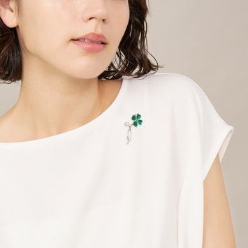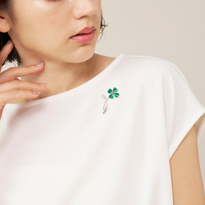 幸運の印といわれる四つ葉のクローバーのブローチ。