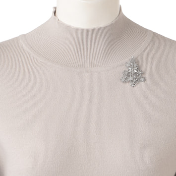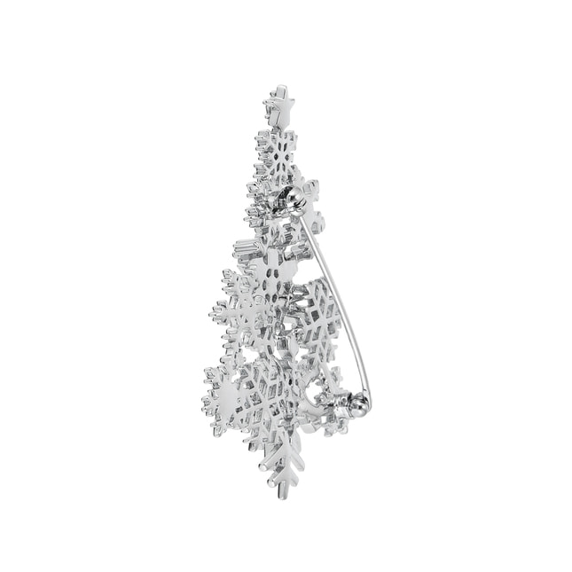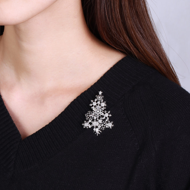 様々な形の雪の結晶をクリスマスツリーにかたどったブローチ。遠目からでも目を引くキラキラと輝くカットガラスの醸しだす繊細な華やかさが印象的。待ち遠しいクリスマスにぴったりなアイテムは、身につけるだけで幸せな気分を運びます。装いをクラスアップさせてくれる華やかなブローチです。