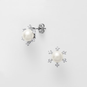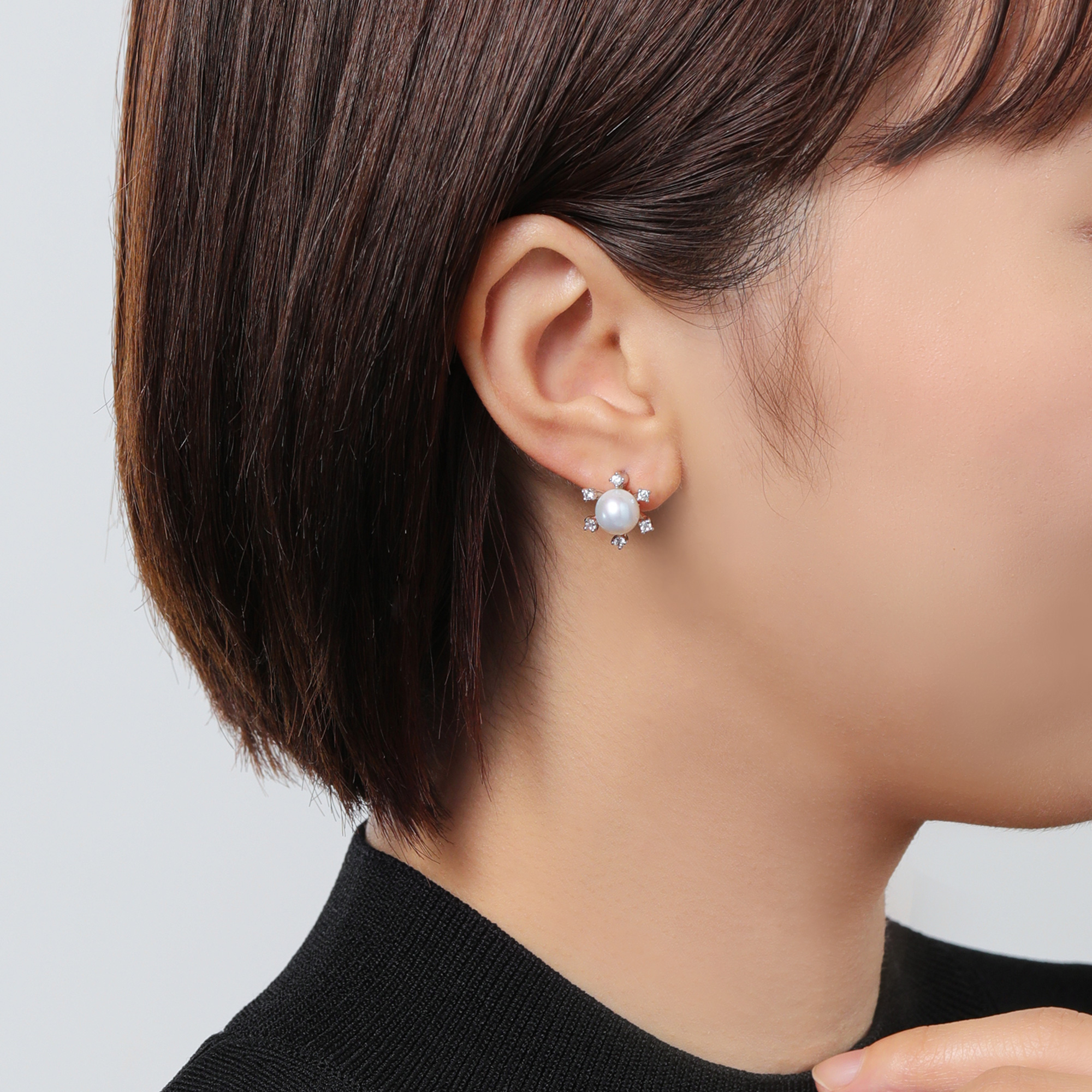 淡水パールの周りにキュービックジルコニアをあしらったピアス。