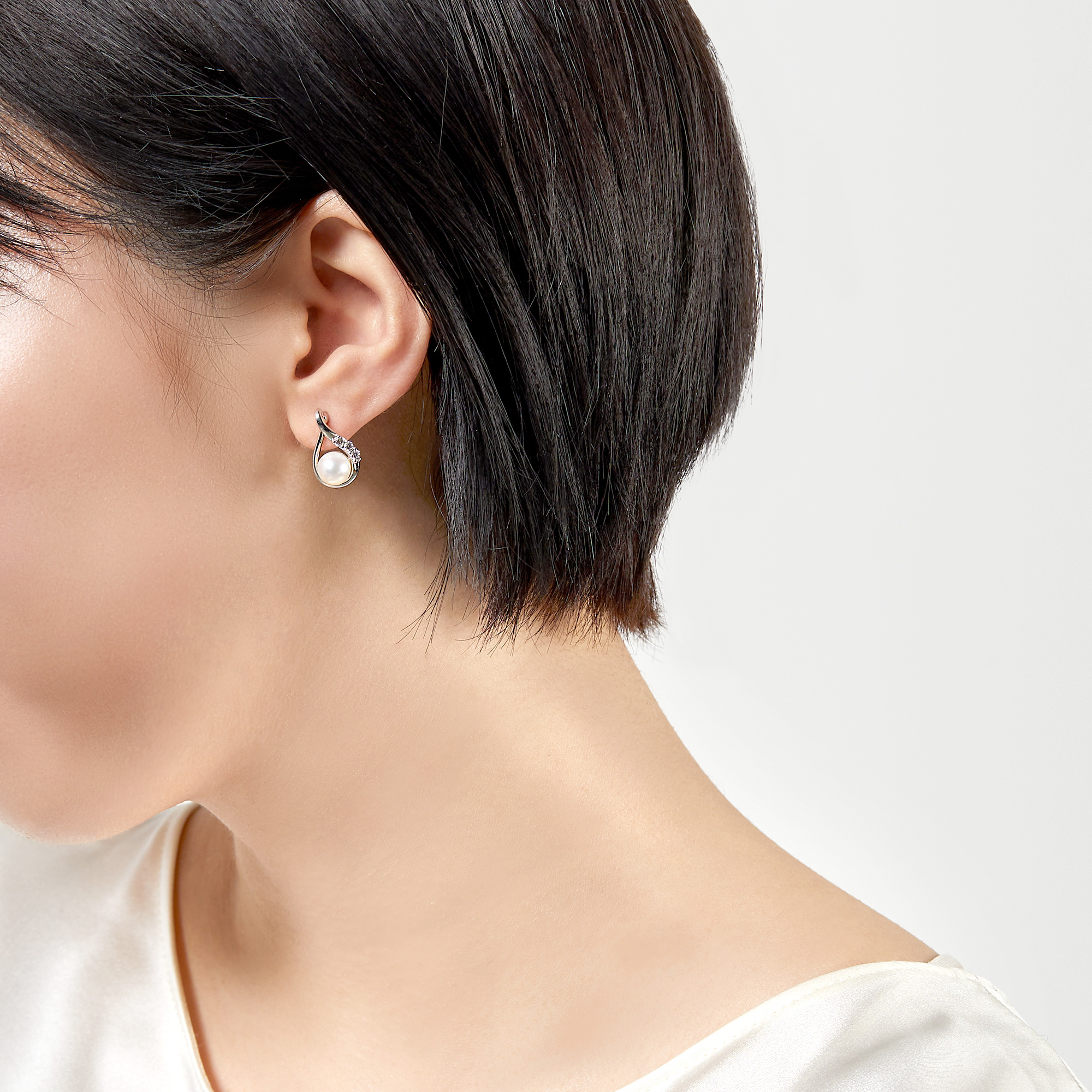 淡水パールの自然なニュアンスとキュービックジルコニアの華やかな輝きが美しいピアス。