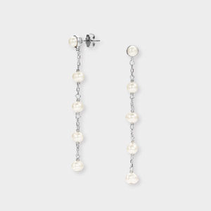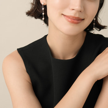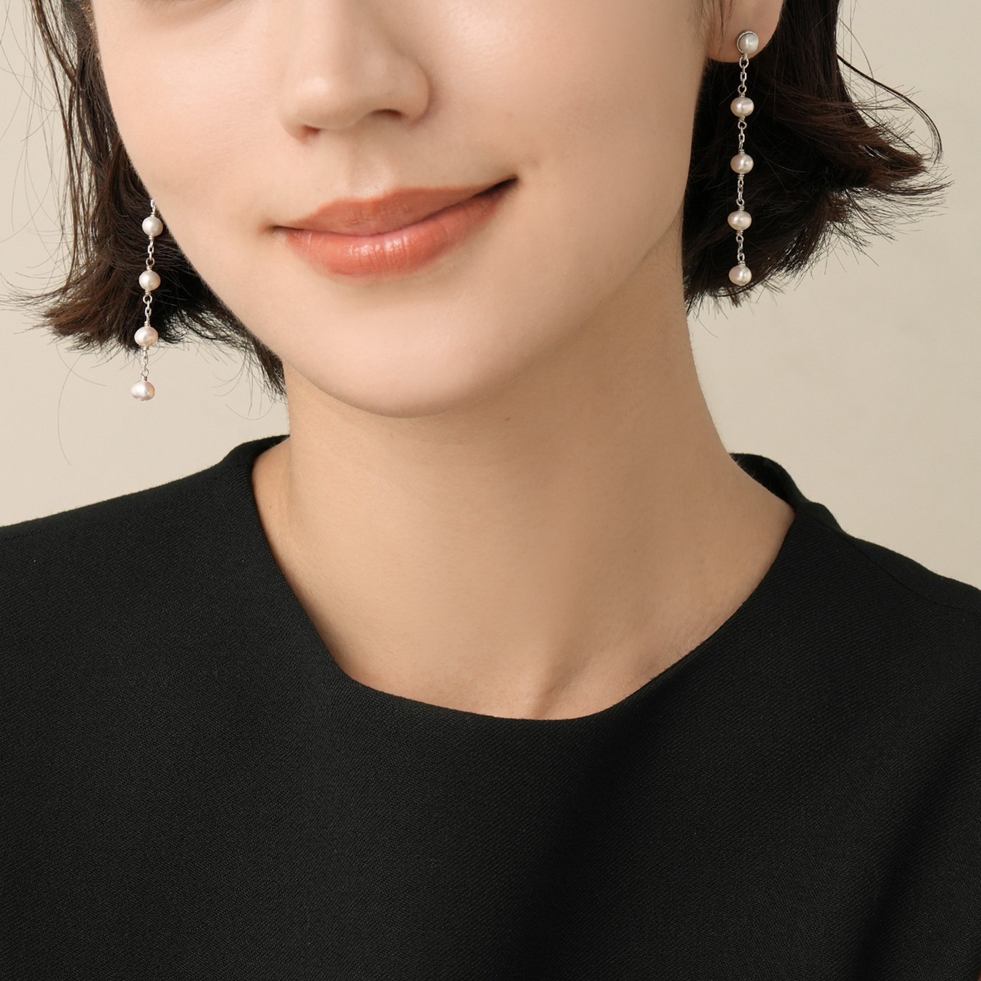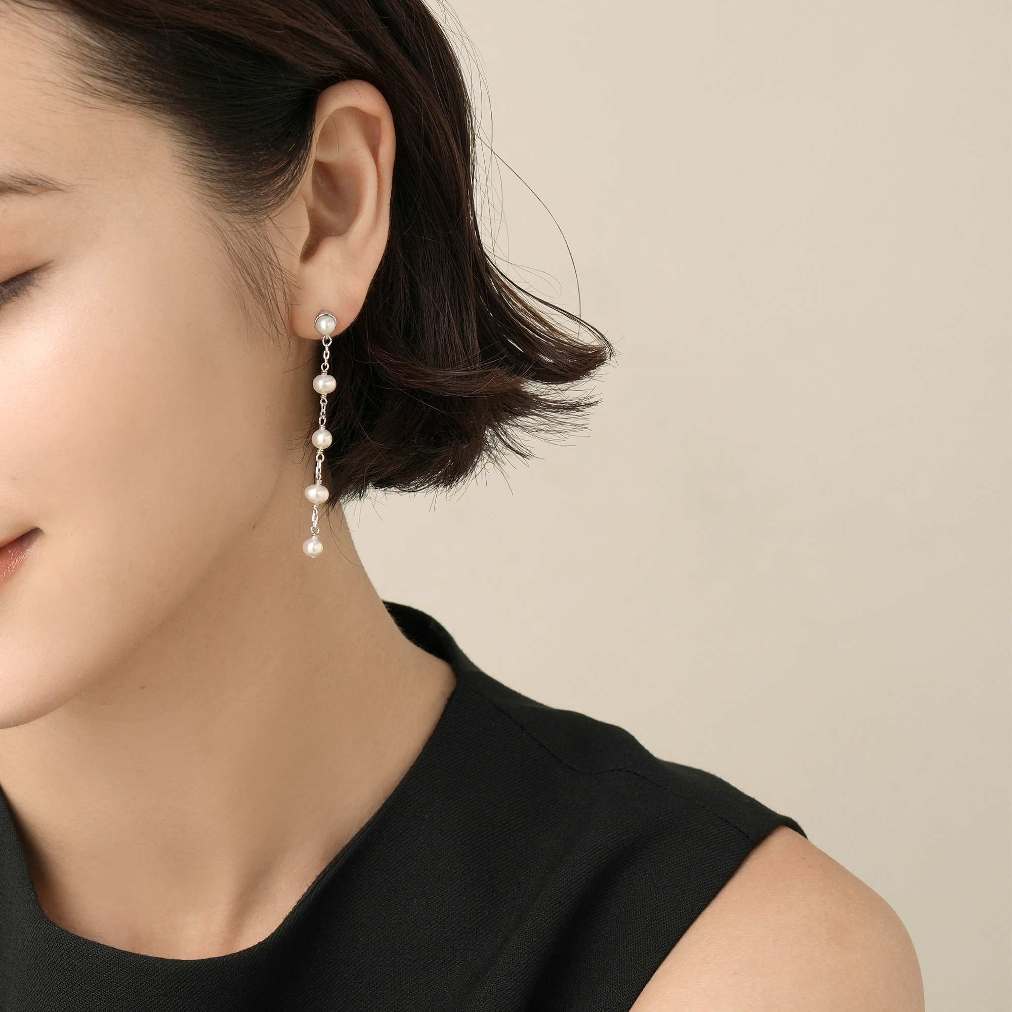 5粒のパールを繊細なチェーンで繋ぎ、揺れるパールが印象的なデザインに仕上げました。
