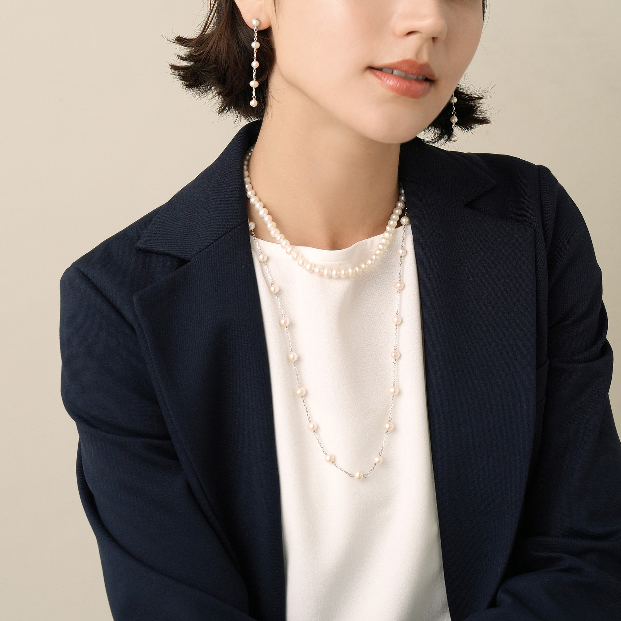 淡水パールならではの柔らかな美しい光沢が、大人のエレガンスを演出します。