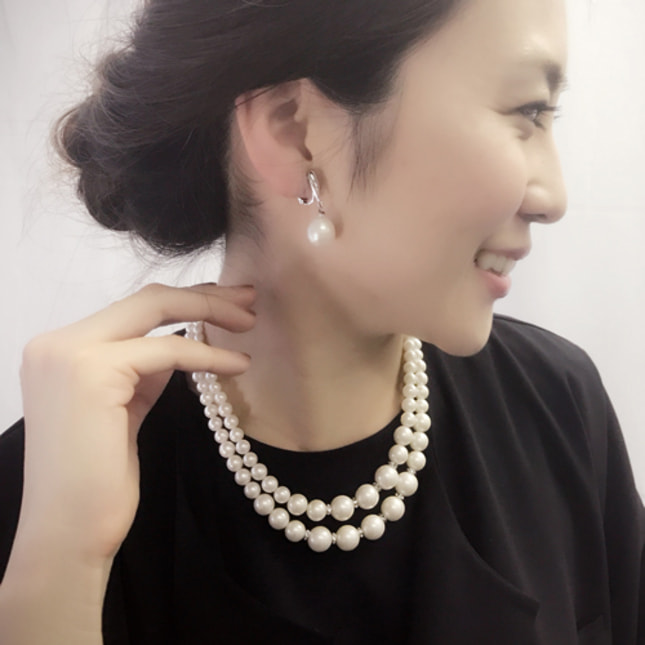 ※デザイン上、大粒の淡水真珠を使用しておりますので、自然素材ならではのふくらみやへこみ(通称えくぼ)等、個体差がございます。
