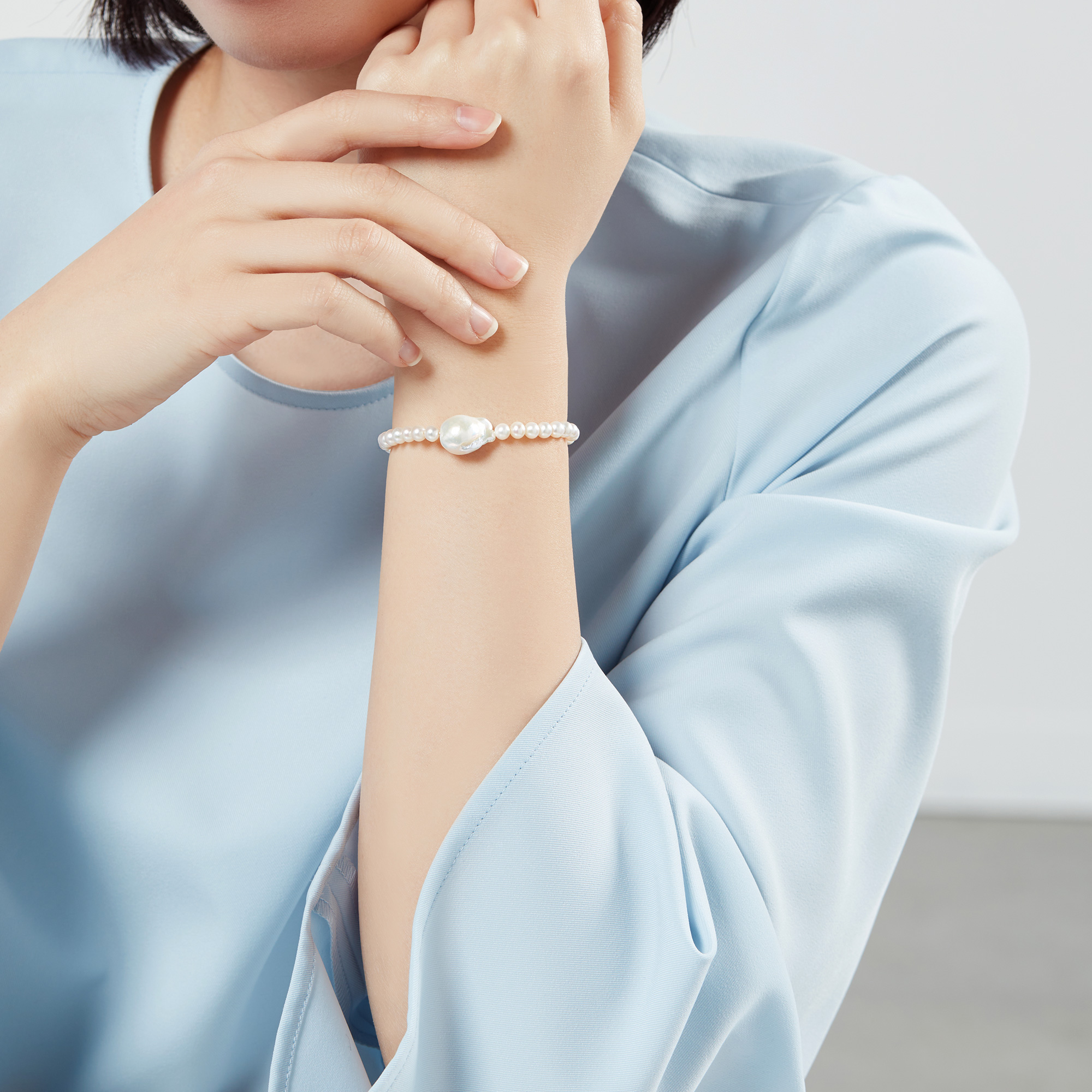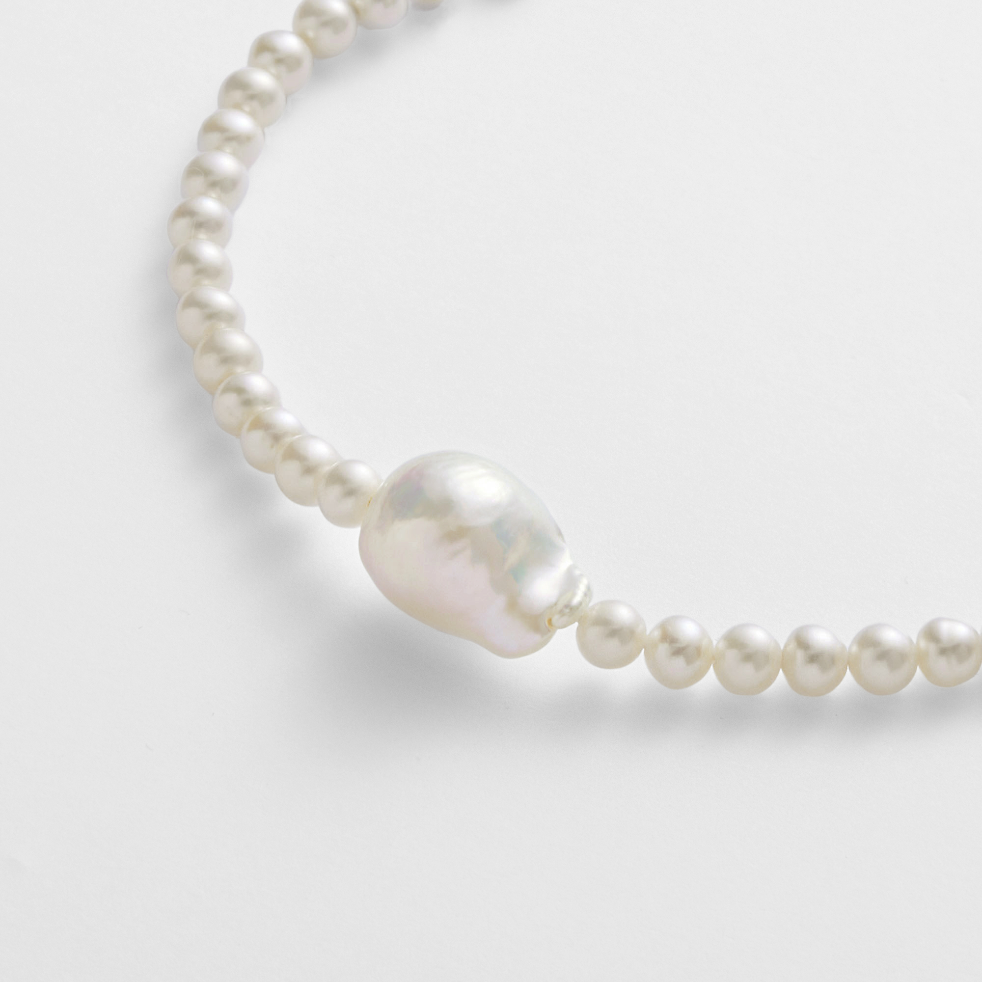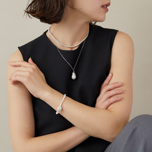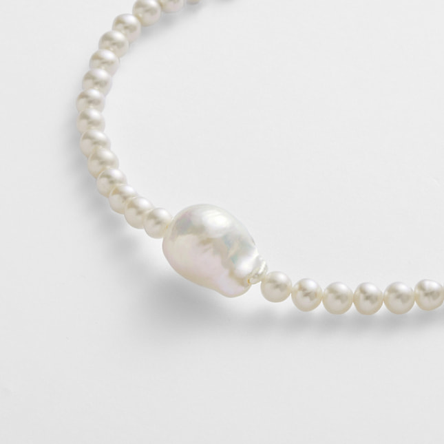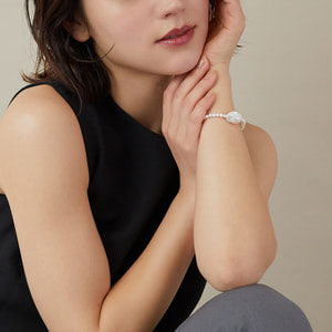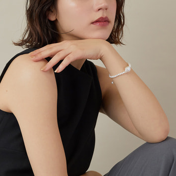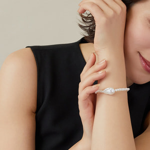 唯一無二のフォルムが魅力の淡水バロックパールをセンターにあしらった美しいブレスレット。
