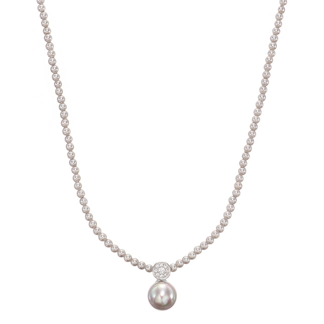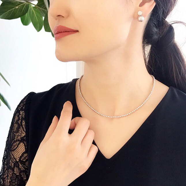ショートネックレスは3mmのベビーパールで繊細でパールらしいまろやかなテリ感がデコルテ周りを女性らしく演出してくれるアイテム。
