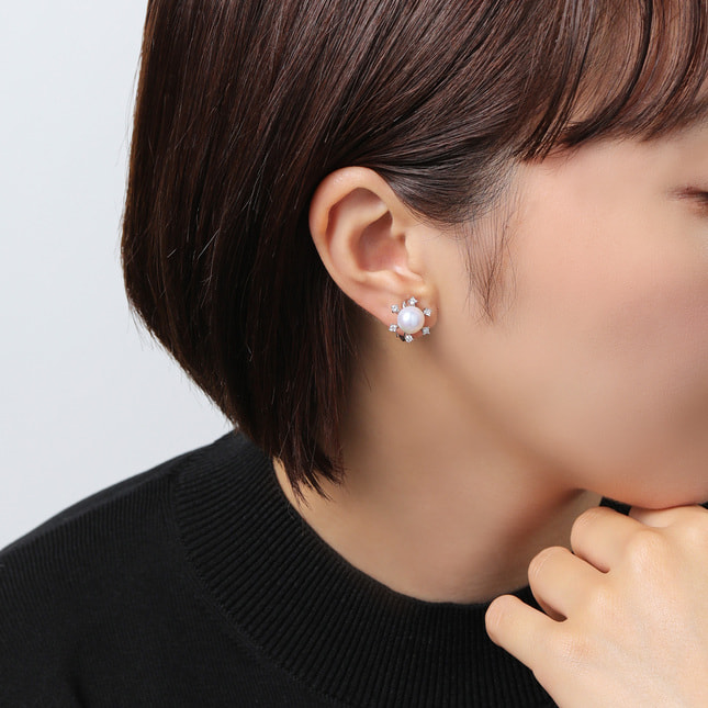 キュービックジルコニアの爪でパールを留めたような、ジュエリーライクなデザインが魅力。