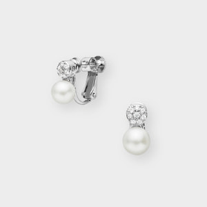 淡水パールとキュービックジルコニアの美しさが際立つイヤリング。淡水パールならではの柔らかな光沢と散りばめられたキュービックジルコニアの繊細な輝きが、耳元をキラリと上品に演出します。程よいサイズ感でデイリーからフォーマルまで様々なシーンでお使いいただけます。ギフトとしてもおすすめです。