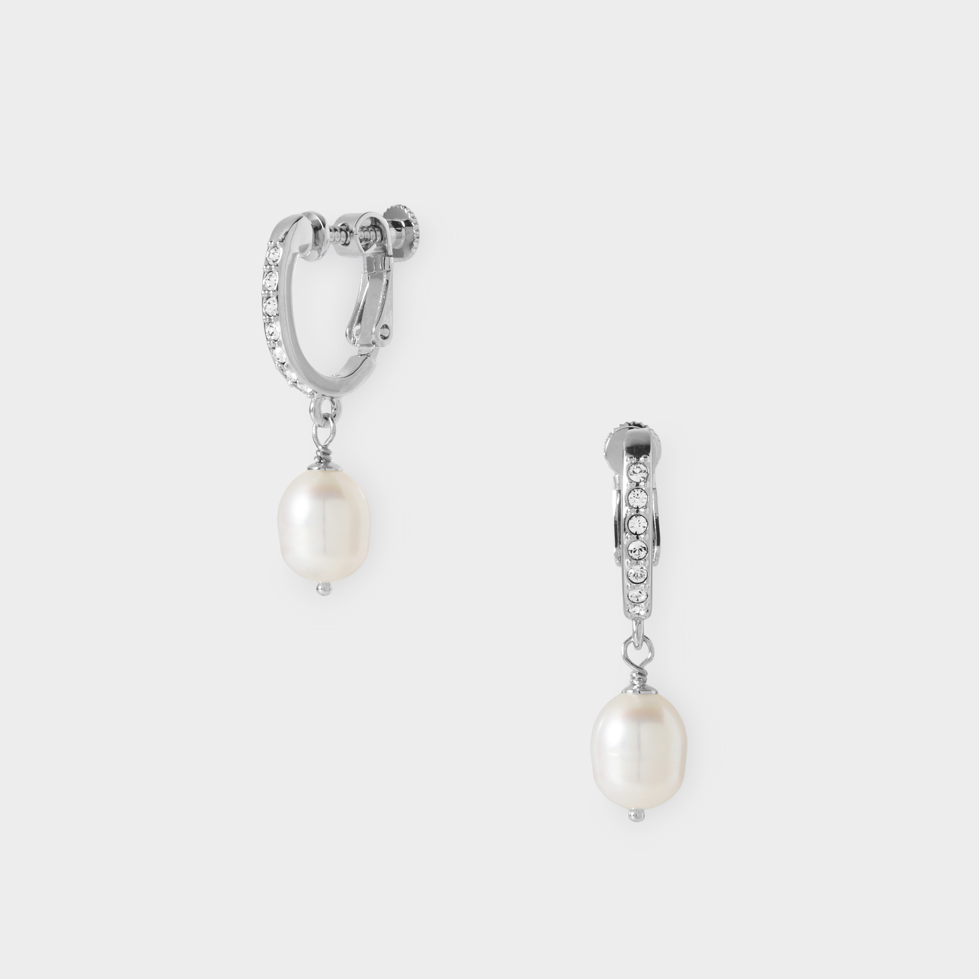 上品な光沢が美しい淡水パールに、カットガラスの輝きを添えたエレガントなイヤリング。