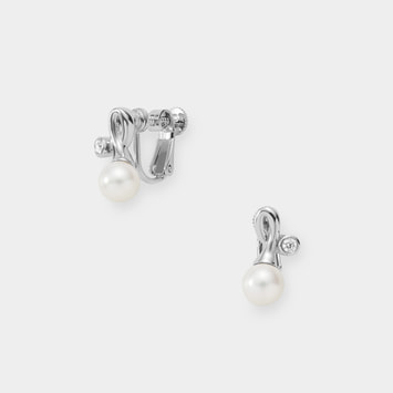 くるりと巻かれたメタルシルエットから下がる淡水パールが美しいシンプルキュートなイヤリング。